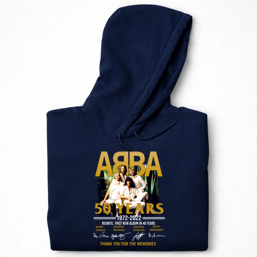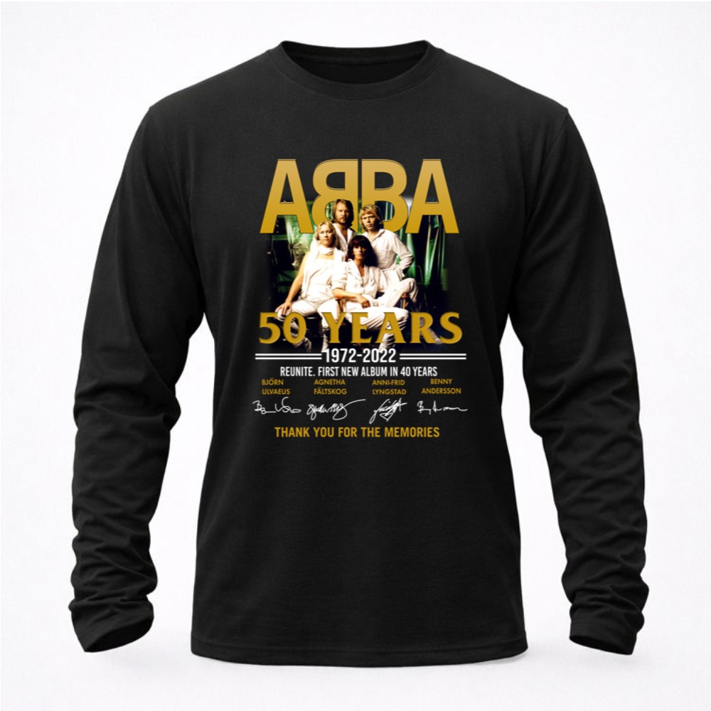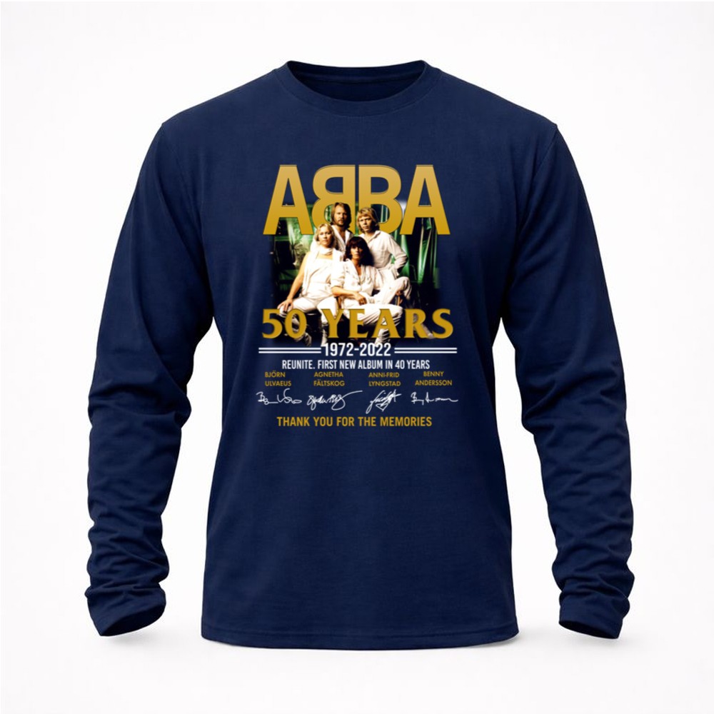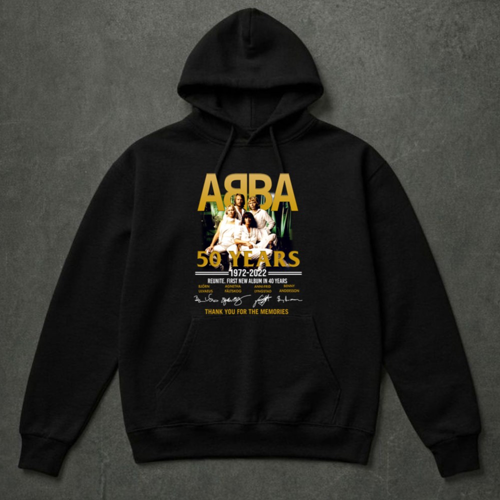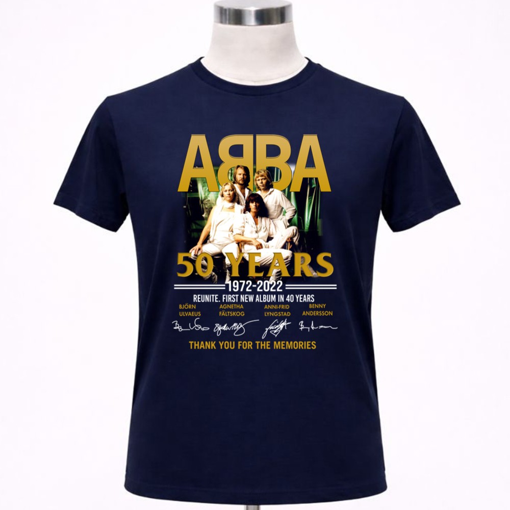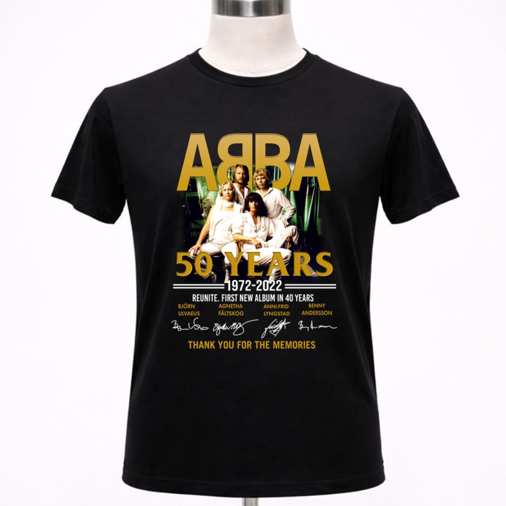 This design serves as a tribute to ABBA’s remarkable journey, encapsulating the essence of their reunion after four decades. The retro aesthetic and heartfelt sentiment, ‘Thank you for the memories,’ evoke a profound sense of nostalgia, honoring the Swedish pop legends who brought joy to millions. It’s more than a t-shirt; it’s a celebration of music that transcends time.