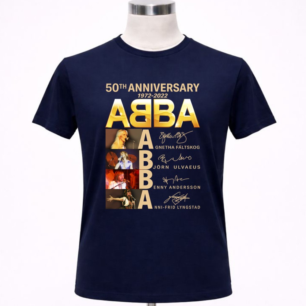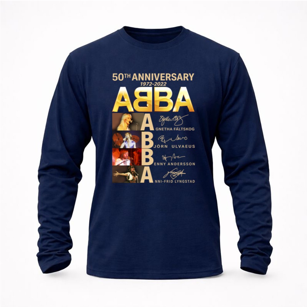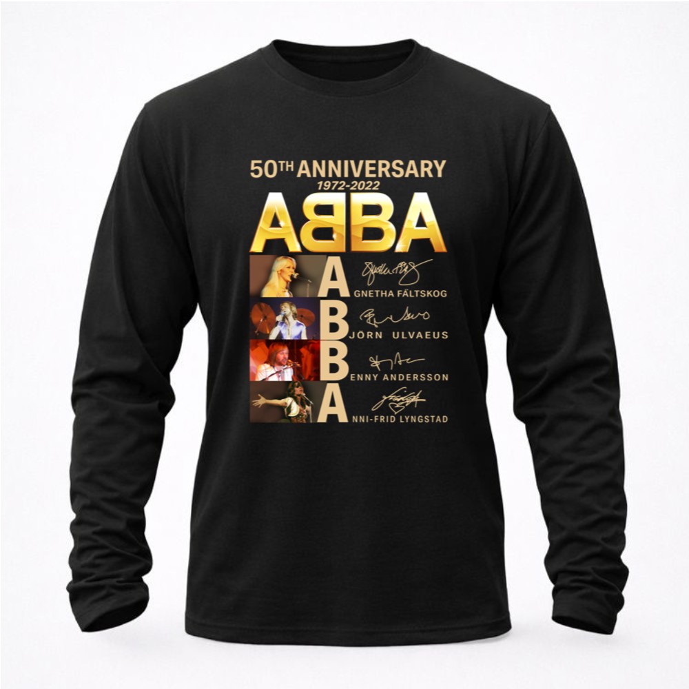 This design captures the spirit of celebration, marking 50 years since ABBA first graced the music scene. With bold typography and vibrant colors, it reflects the joy and unity their music brings, making it a cherished piece for fans who hold their songs close to their hearts. The signatures of Agnetha, Björn, Benny, and Anni-Frid add a personal touch, reminding wearers of the unforgettable moments created by this iconic band.