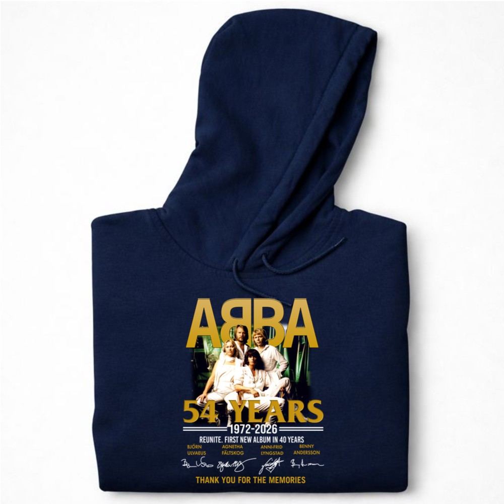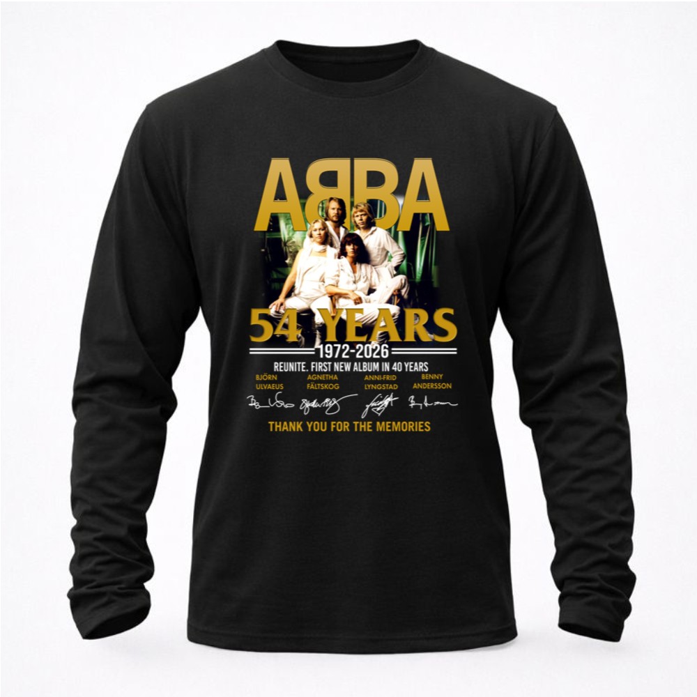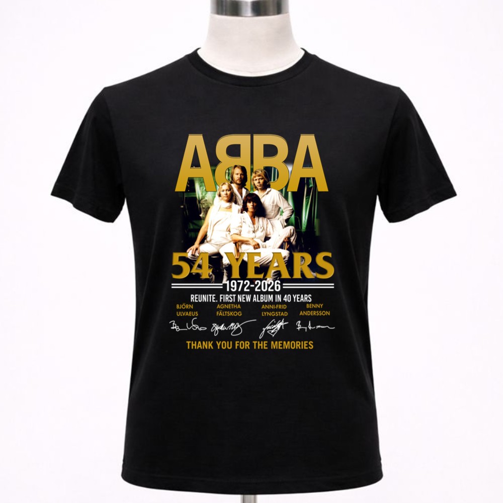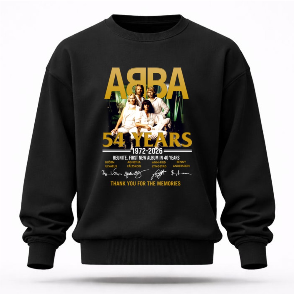 This design reflects the joy and nostalgia of ABBA’s reunion after 40 years, encapsulating the essence of their music that has touched millions. With a vintage tribute style and bold typography, it serves as a reminder of the cherished memories and timeless melodies that continue to inspire generations of fans. ‘Thank you for the memories’ is not just a phrase; it’s a heartfelt acknowledgment of the moments that have brought us together through music.