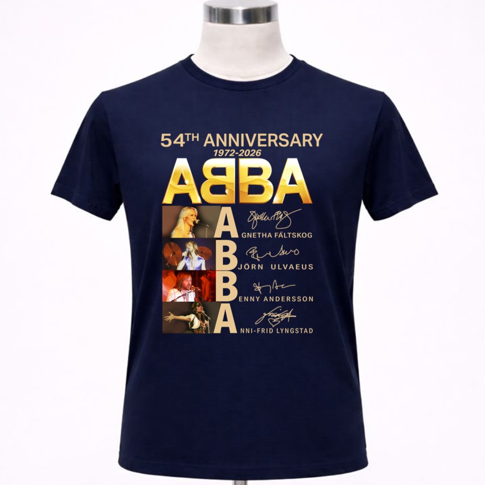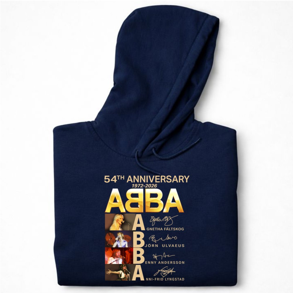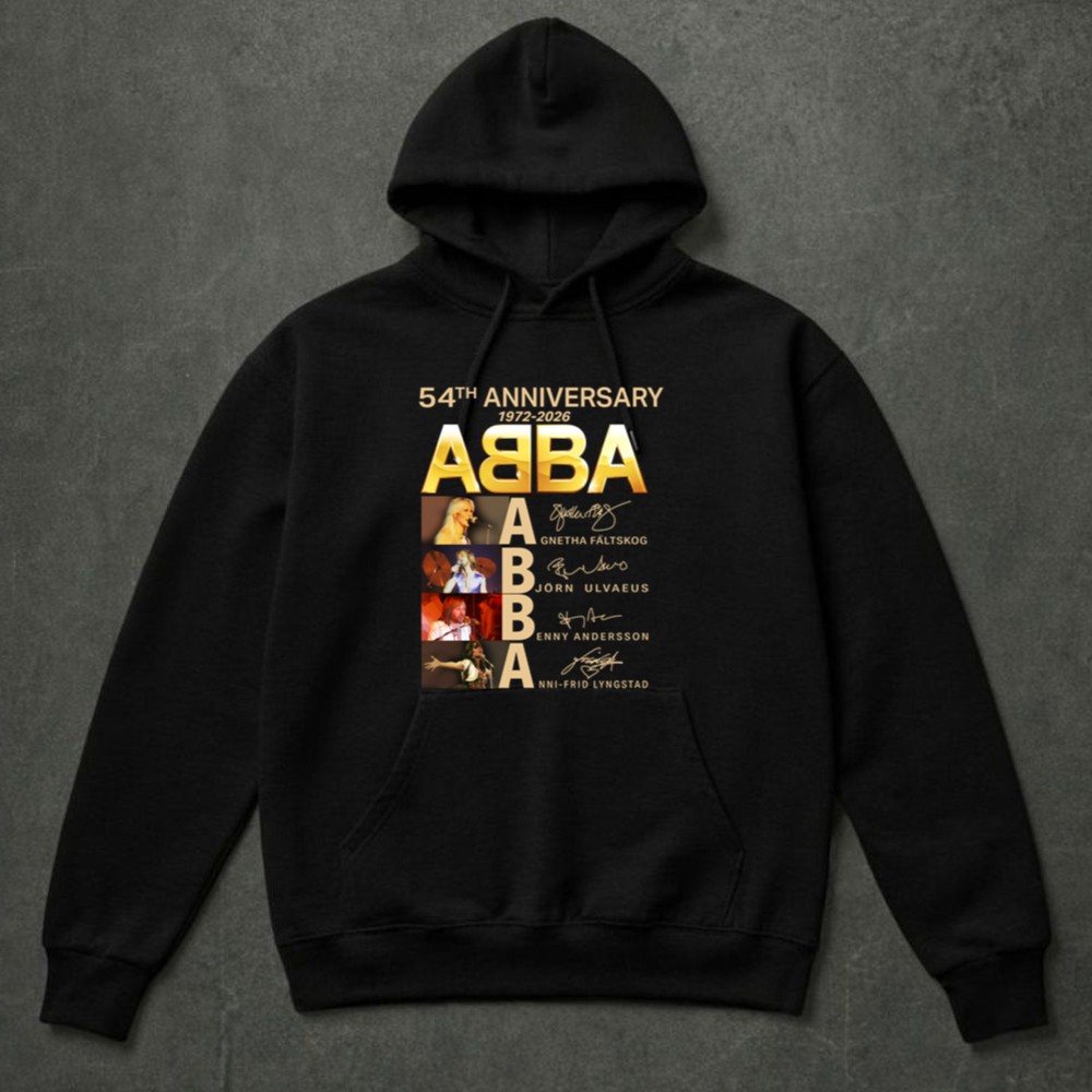 This design captures the essence of ABBA’s remarkable 54-year journey, featuring the signatures of Agnetha, Björn, Benny, and Anni-Frid. It serves as a heartfelt celebration of their impact on music and pop culture, evoking a sense of nostalgia and unity among fans who cherish their timeless classics.