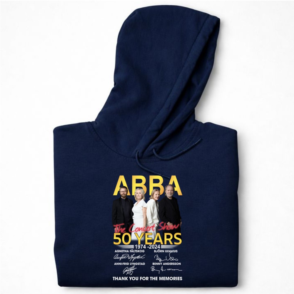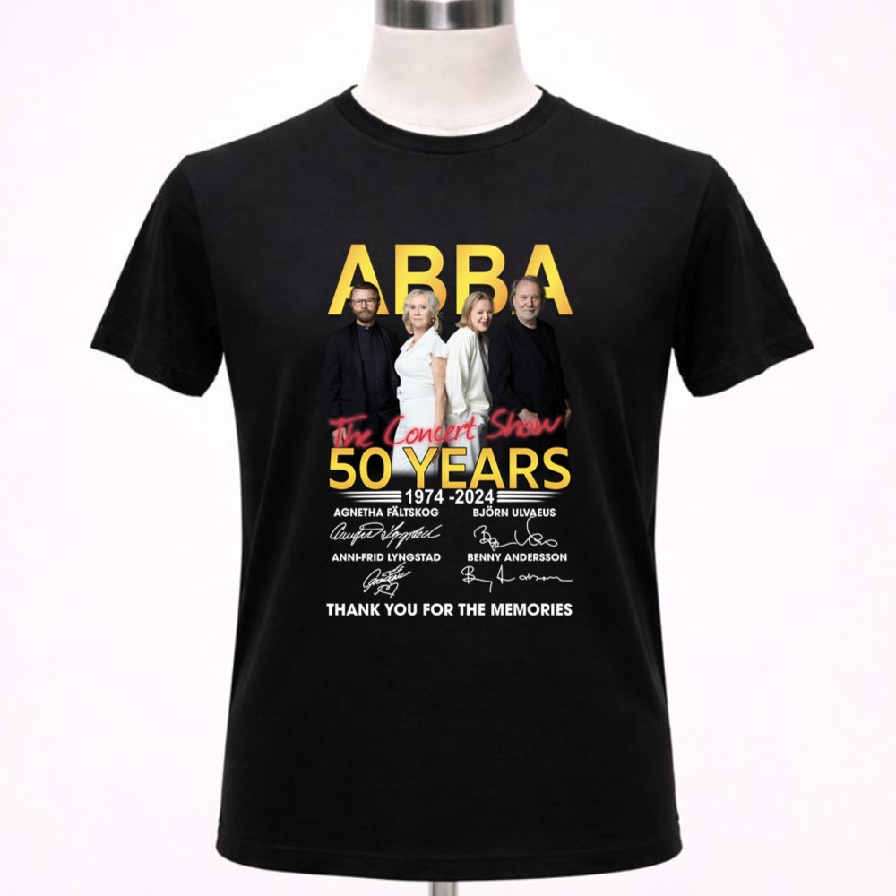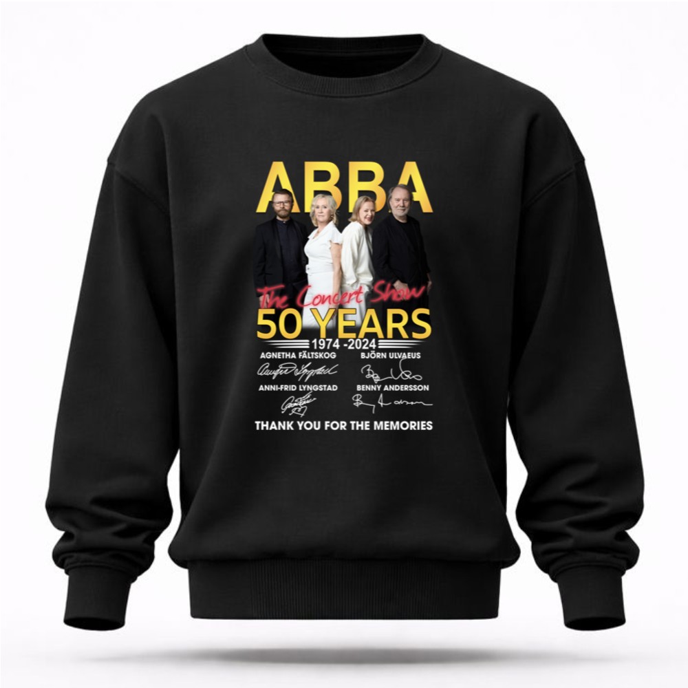 This design pays tribute to ABBA’s extraordinary impact on music over the past 50 years. With signatures from the iconic members, it encapsulates a sense of gratitude and nostalgia, inviting fans to reminisce about the cherished moments shared through their unforgettable songs. The minimalist approach allows the powerful message to shine, making it a true celebration of music history.
