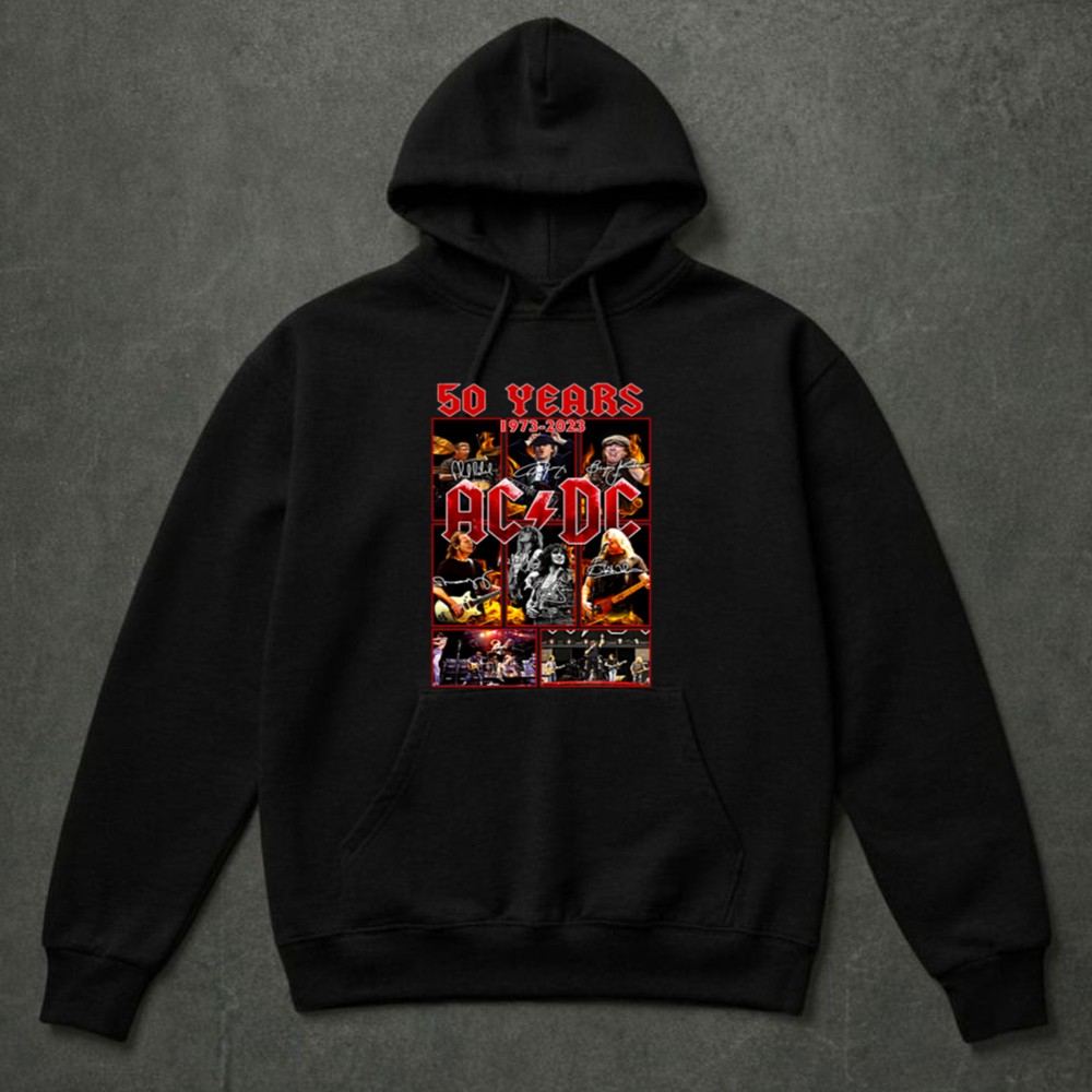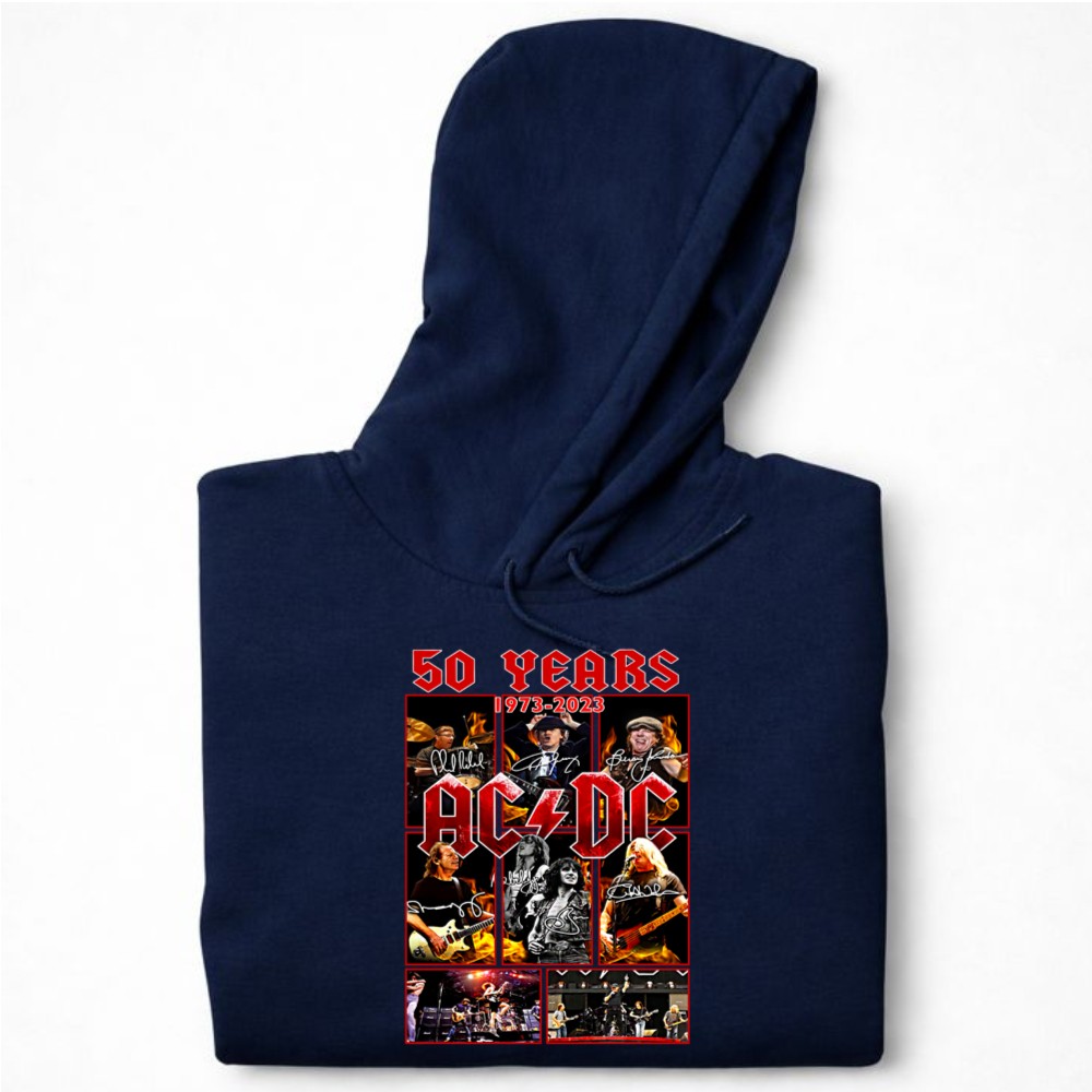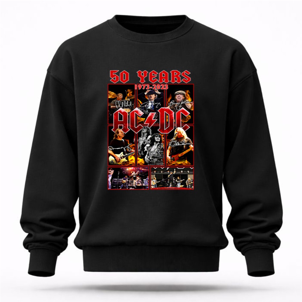 This design embodies the essence of AC/DC’s 50-year journey, showcasing a collage of legendary performance imagery intertwined with the signatures of its iconic members. It celebrates the unifying power of rock music, reflecting the passion and loyalty of fans who have cherished their electrifying sound through the decades.