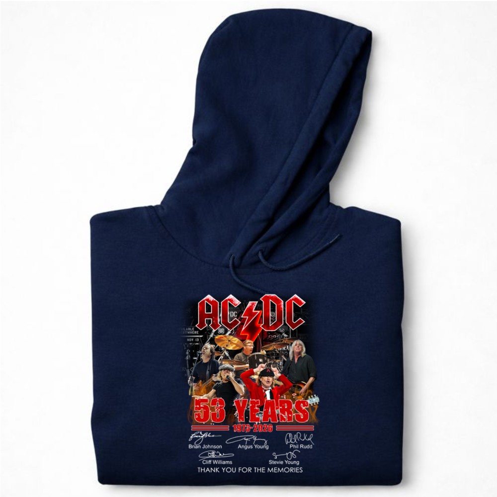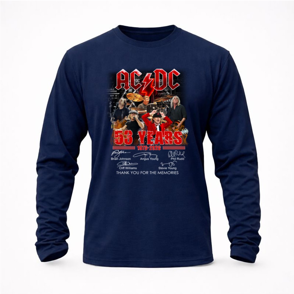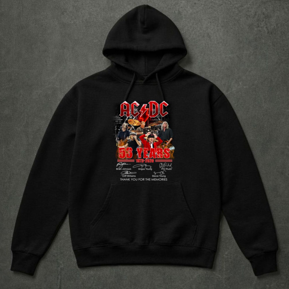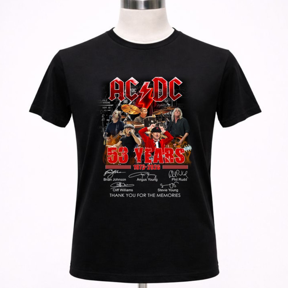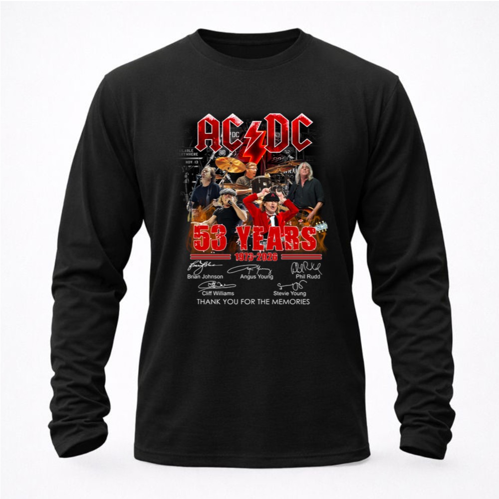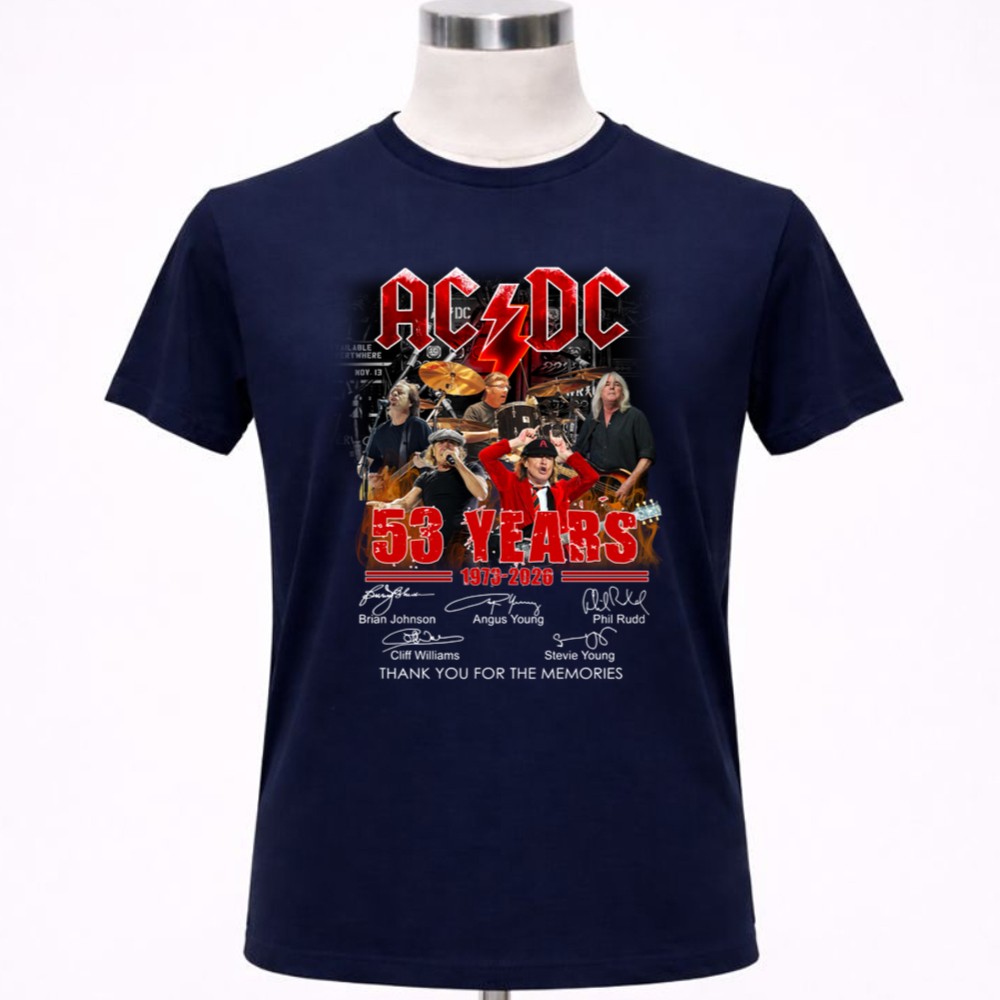 This shirt celebrates AC/DC’s remarkable 53-year journey, featuring the signatures of legends like Brian Johnson and Angus Young. It embodies a deep sense of nostalgia, allowing fans to honor the band’s legacy while proudly displaying their love for rock music. With ‘THANK YOU FOR THE MEMORIES’ inscribed, it serves as a heartfelt tribute to the unforgettable moments shared through their music.
