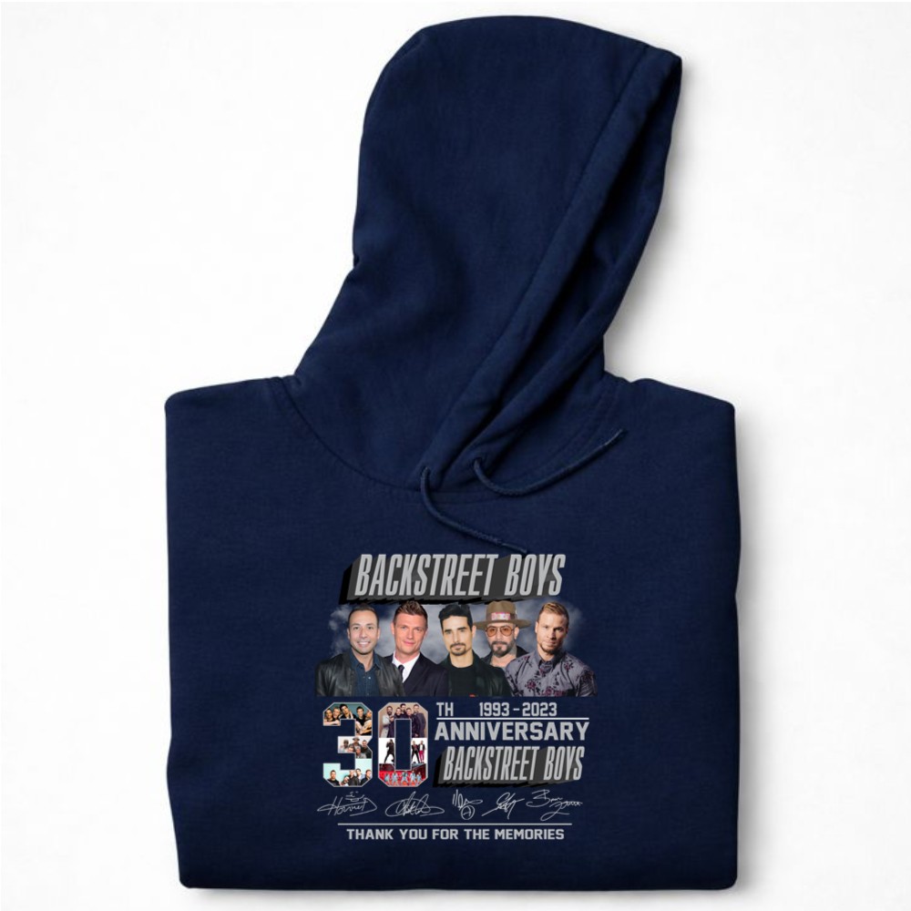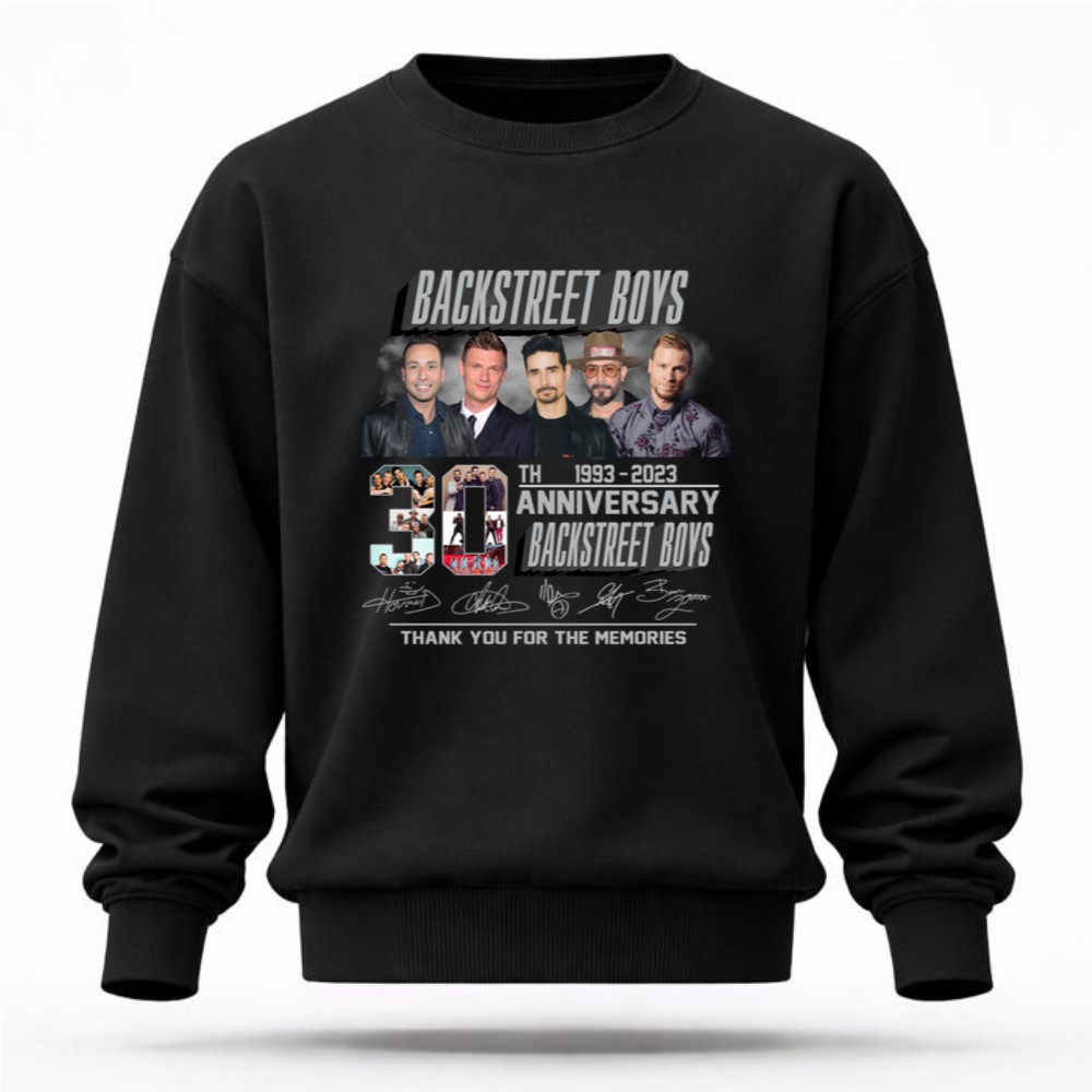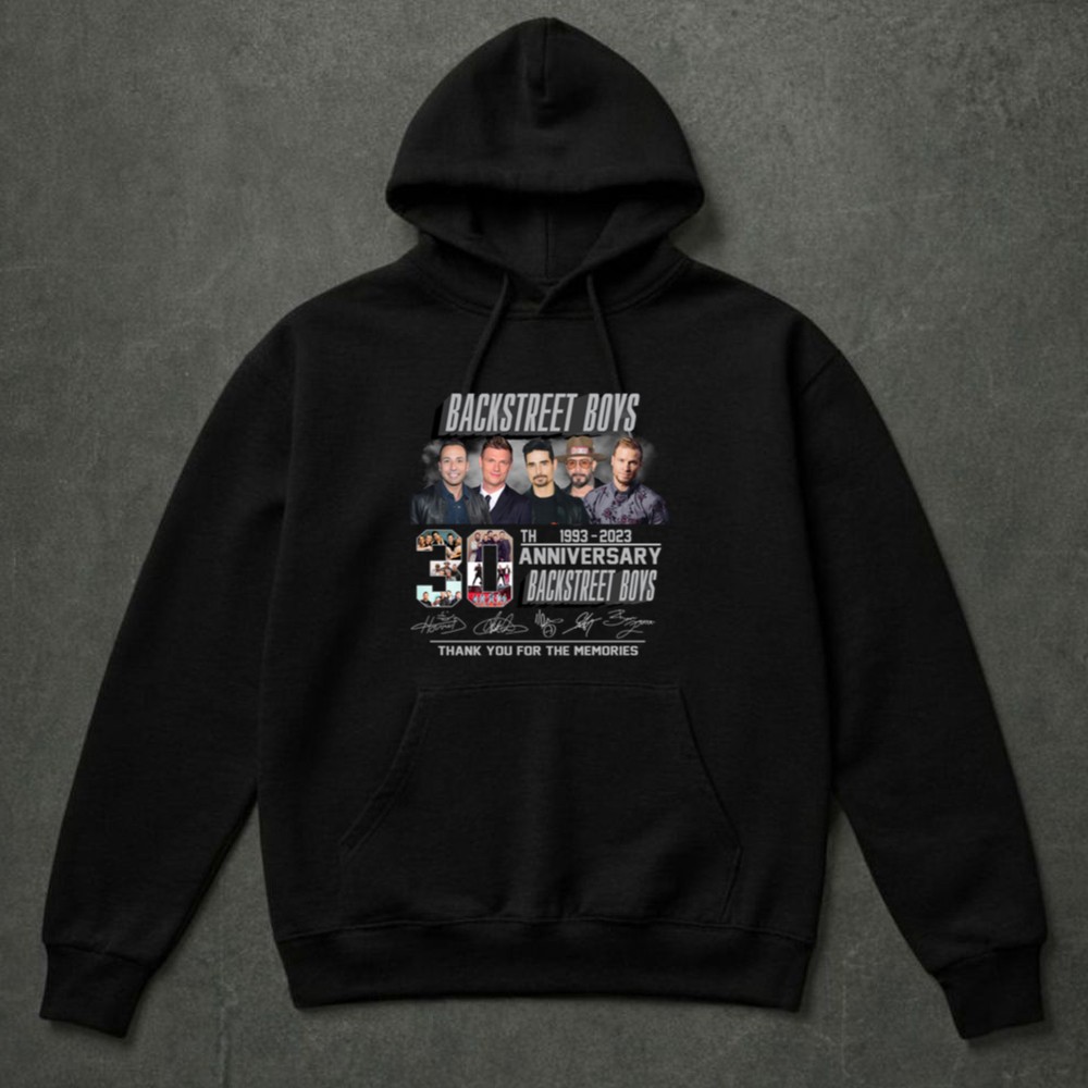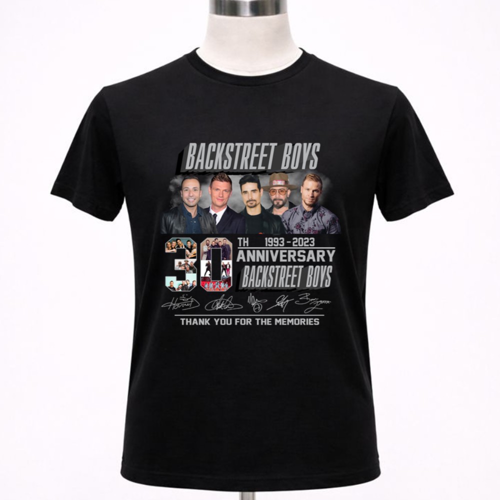 This design captures the essence of three decades filled with unforgettable memories and heartfelt moments shared by fans. Featuring the signatures of AJ McLean, Howie Dorough, Nick Carter, Kevin Richardson, and Brian Littrell, it serves as a nostalgic celebration of the Backstreet Boys’ enduring legacy. The phrase ‘THANK YOU FOR THE MEMORIES’ reflects a deep appreciation for the music that has shaped lives and connected fans across generations.