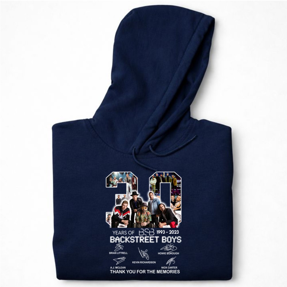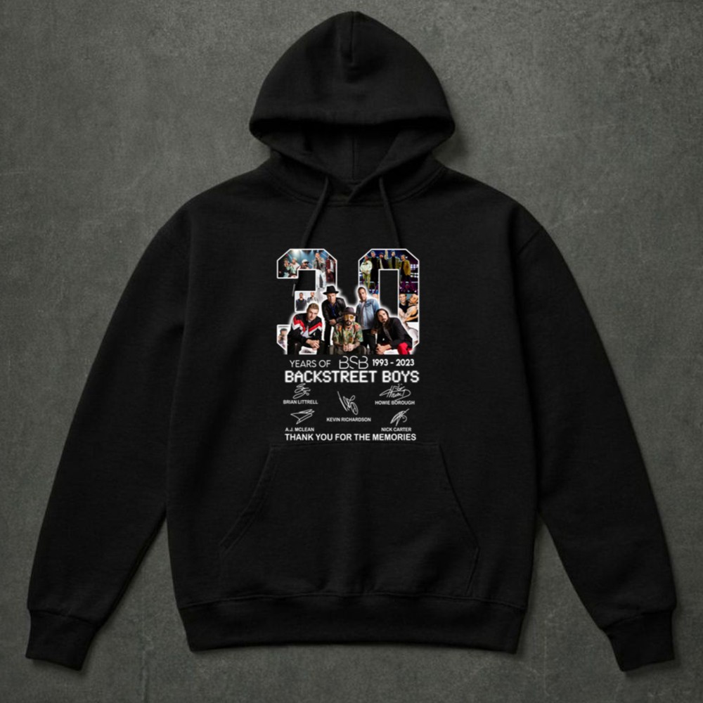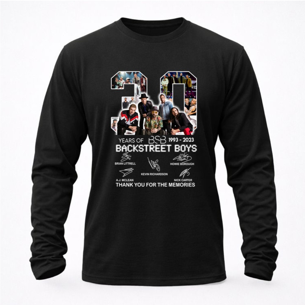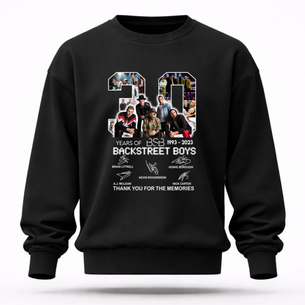 This design is a celebration of the Backstreet Boys’ 30-year legacy, capturing the essence of joy and nostalgia that their music brings. The vibrant collage, adorned with the iconic signatures of Brian, A.J., Kevin, Howie, and Nick, serves as a heartfelt thank you to fans who have supported them over the years. It’s a tribute to unforgettable memories, resonating deeply with anyone who has danced to their hits.