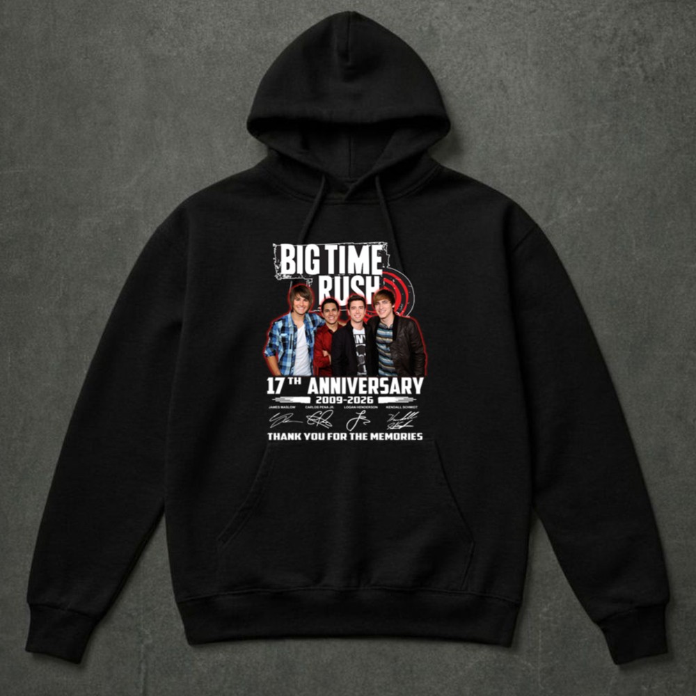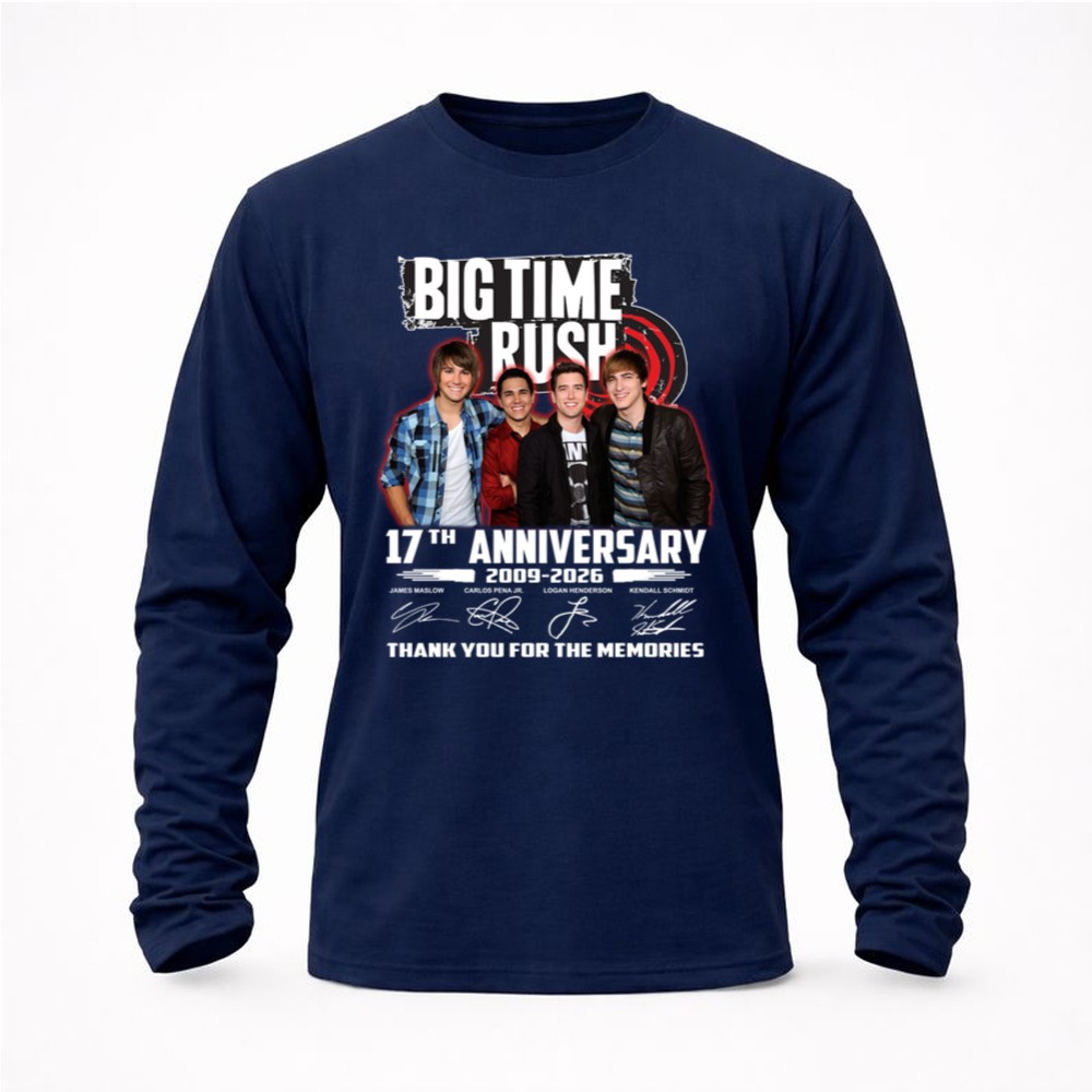 This design captures the essence of Big Time Rush’s journey from 2009 to 2026, celebrating their music and the joy they’ve brought to fans. With signatures from James, Carlos, Logan, and Kendall, it serves as a vibrant reminder of the unity and cherished memories shared among listeners. It’s not just a shirt; it’s a piece of pop culture that resonates with every heartbeat of a fan.