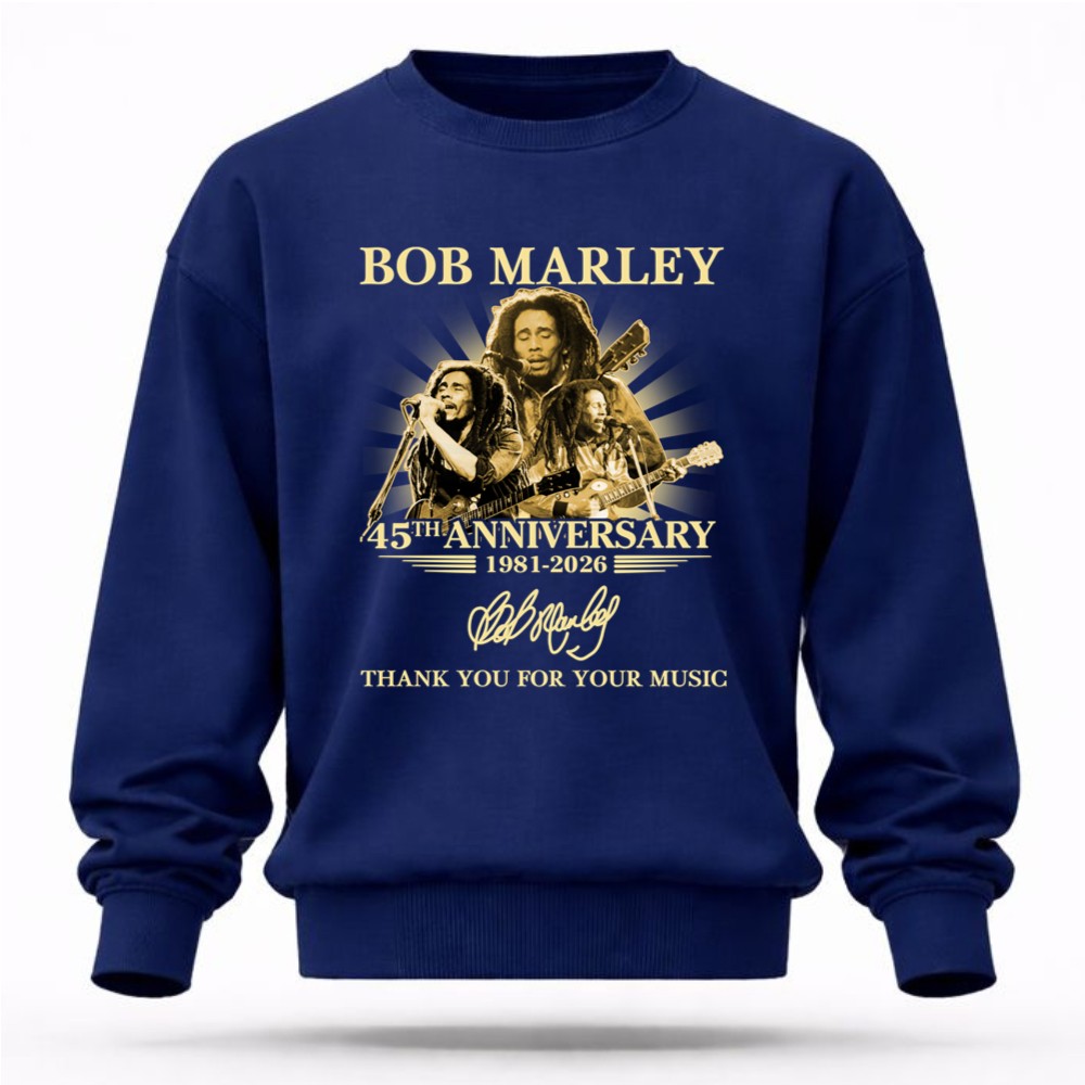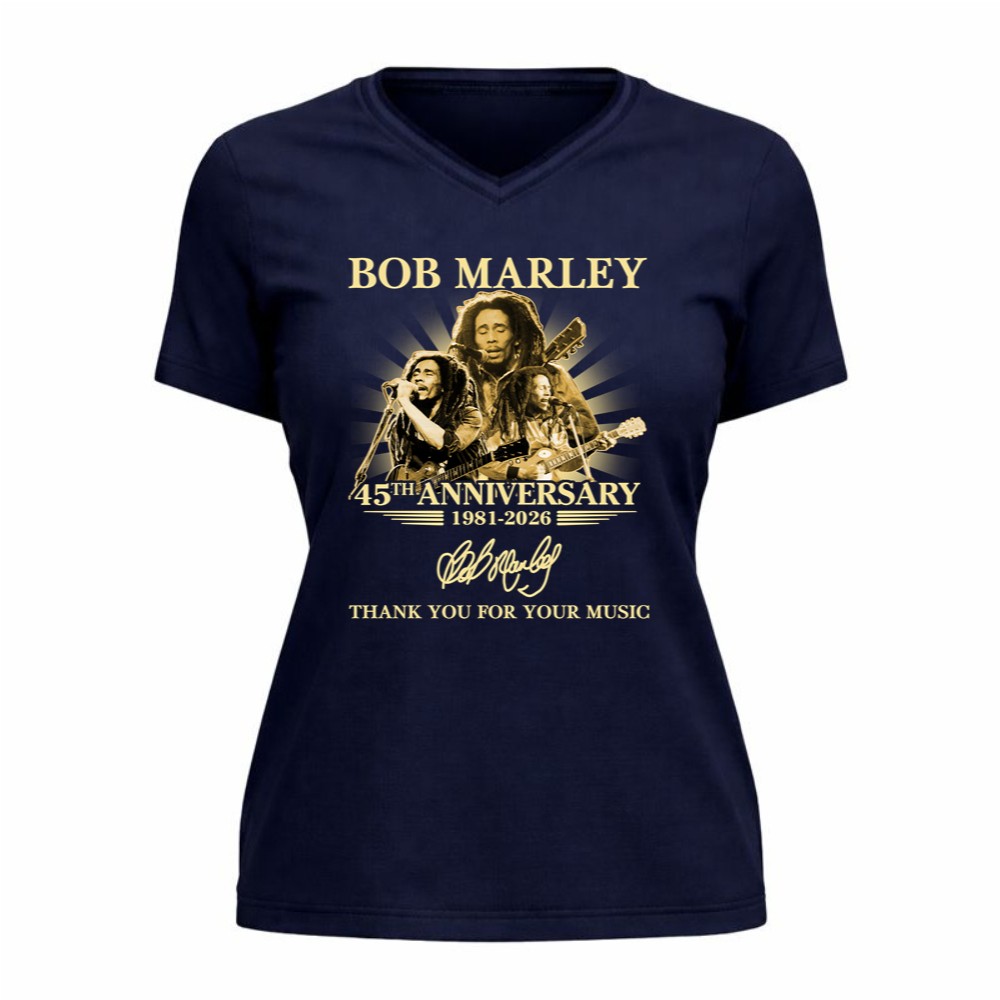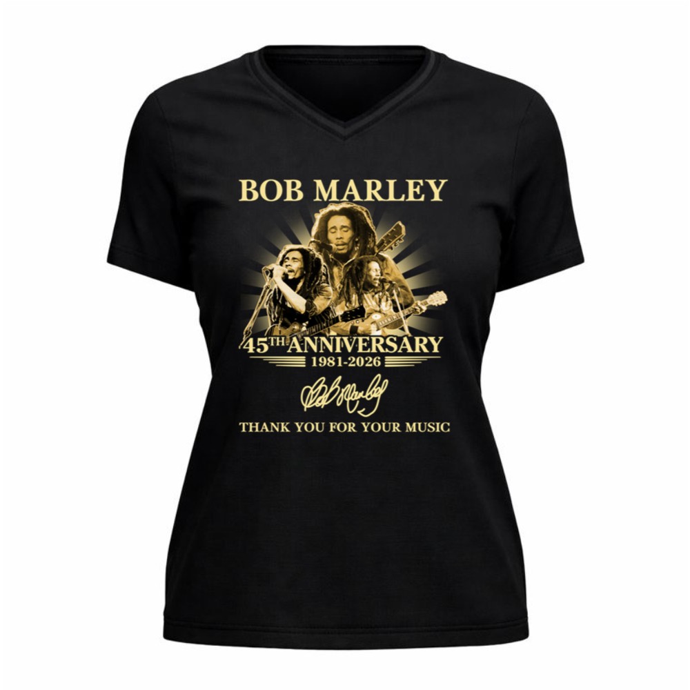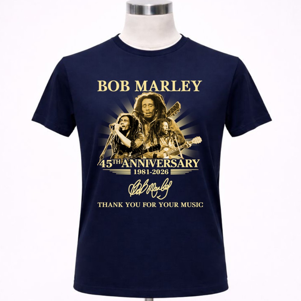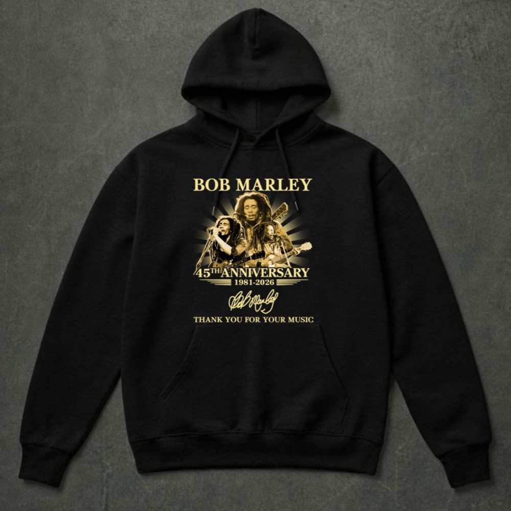 This design captures the essence of Bob Marley’s legacy, celebrating the 45th anniversary of his music with a striking portrait and the heartfelt words, ‘Thank You For Your Music.’ The vintage tribute style reflects the depth of reggae culture, inviting wearers to connect with the joy and inspiration his music continues to bring.