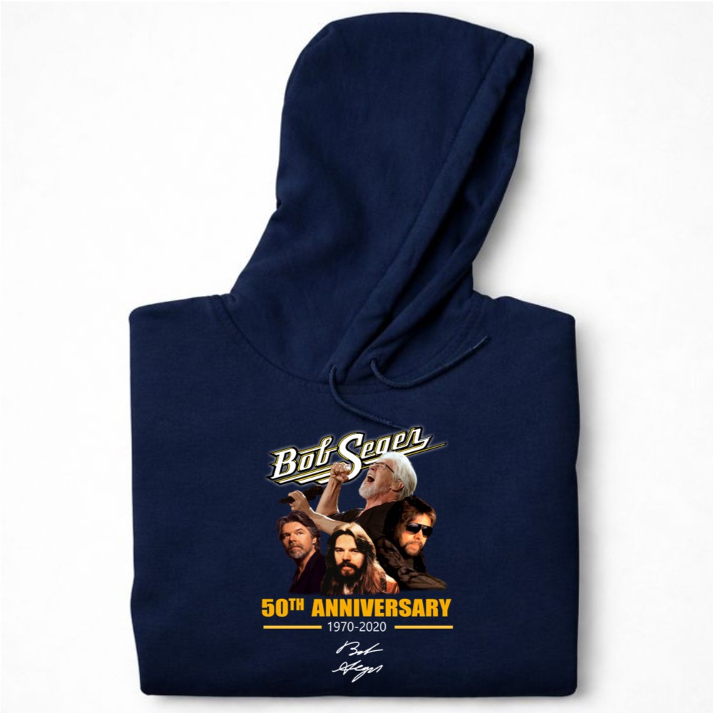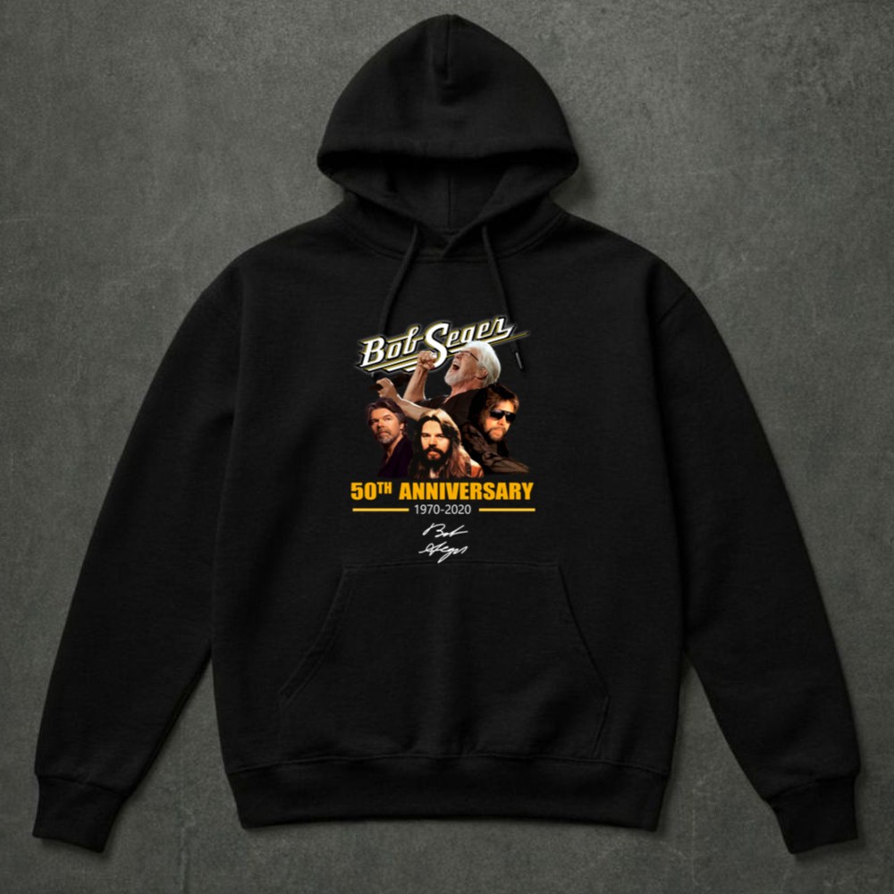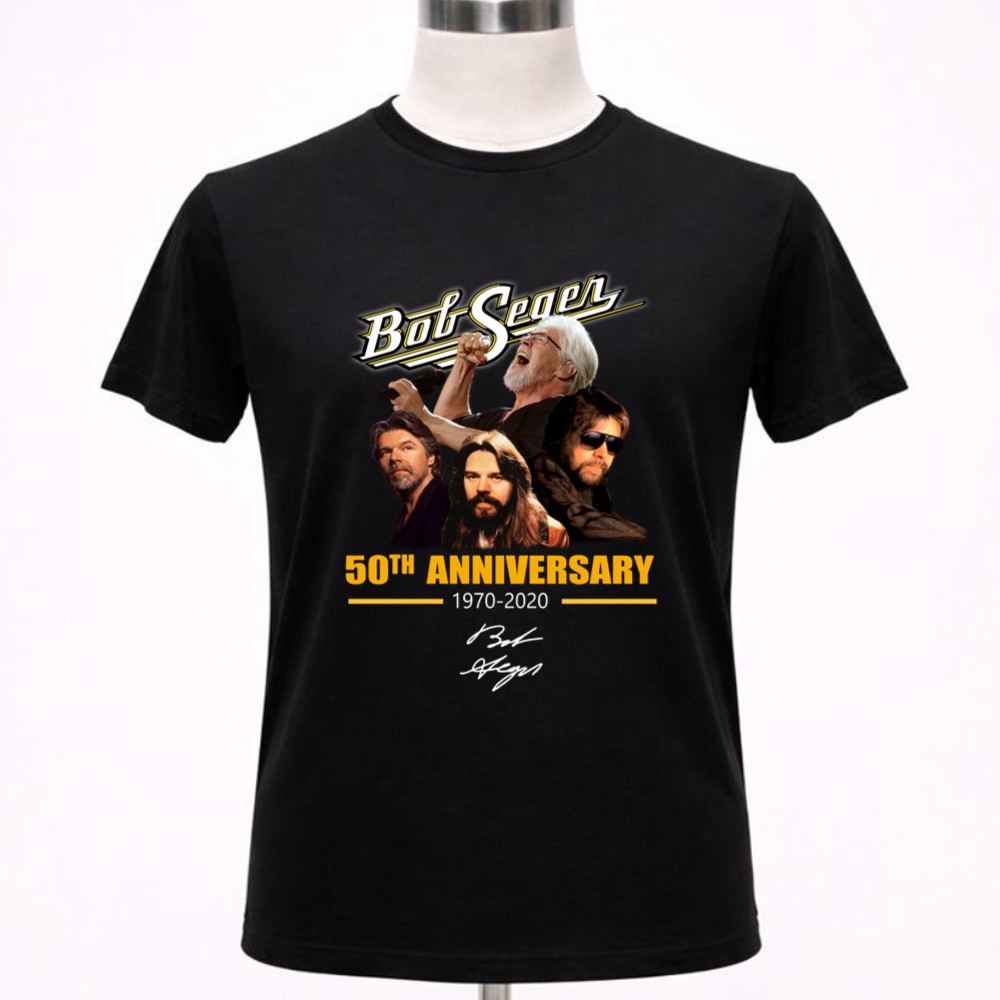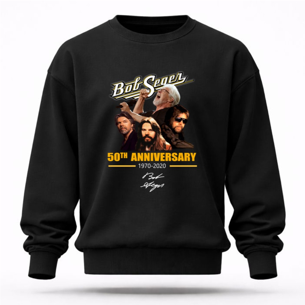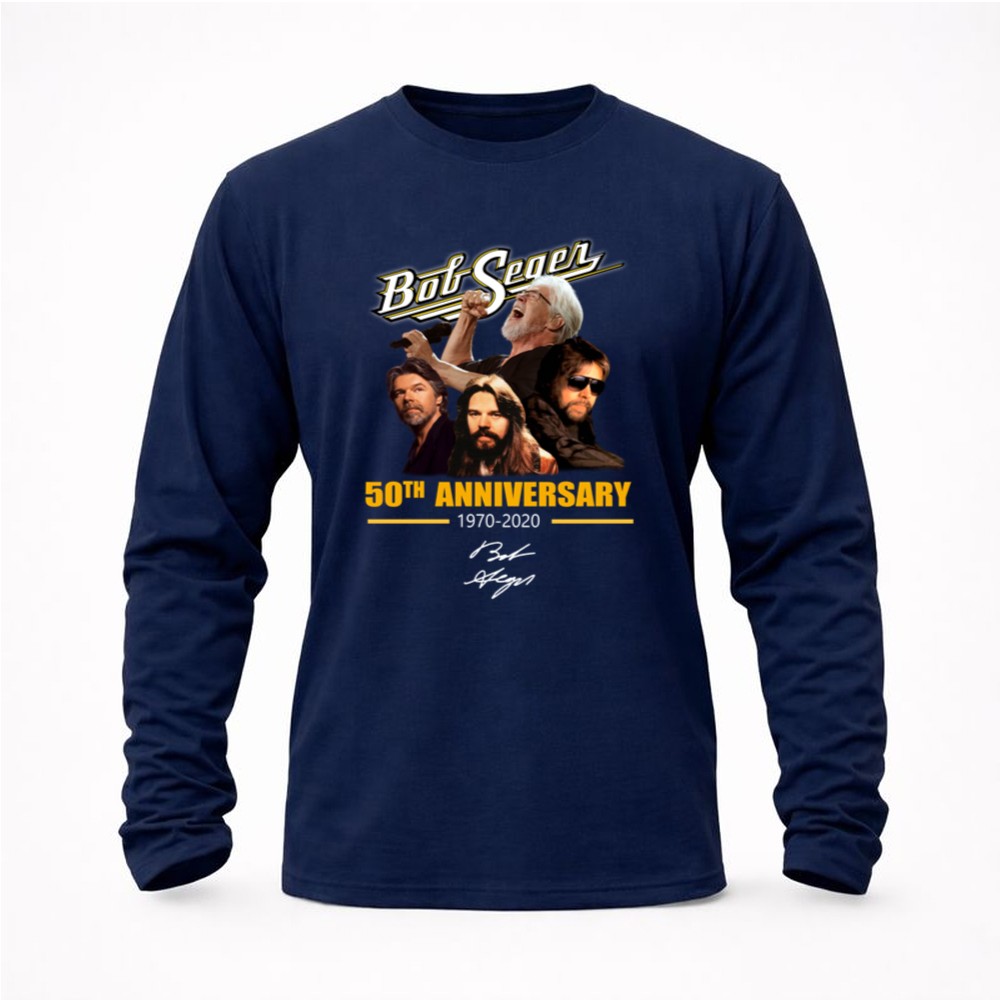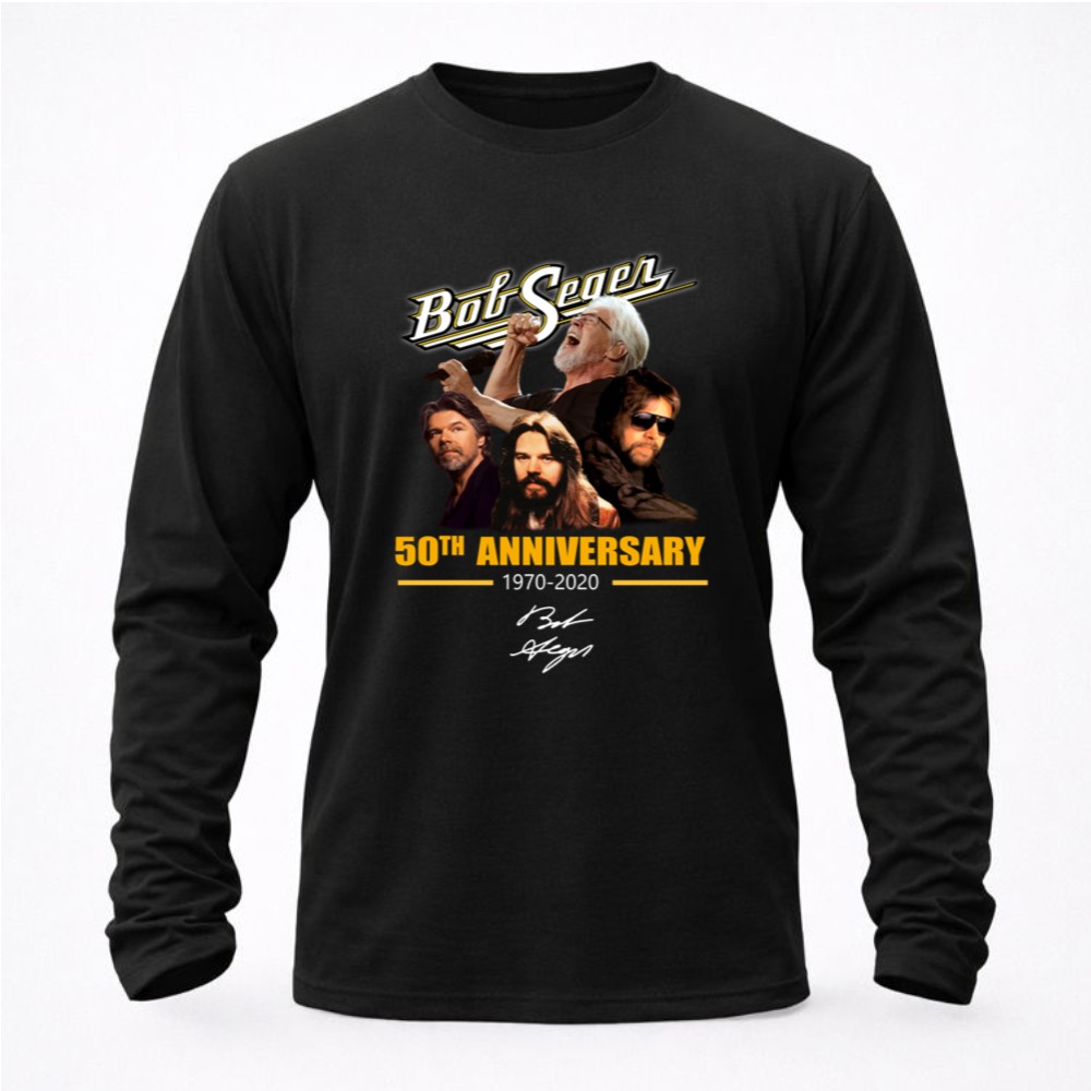 This design captures the essence of Bob Seger’s 50th anniversary, featuring iconic images of the artist and his band members. It serves as a nostalgic reminder of the powerful music that has shaped generations, celebrating both the man and his timeless contributions to rock and roll. Each wear of this tee is a tribute to the legacy of an American icon, resonating deeply with those who have followed his journey.