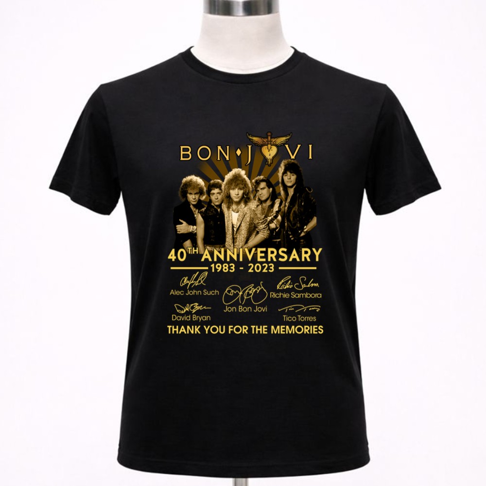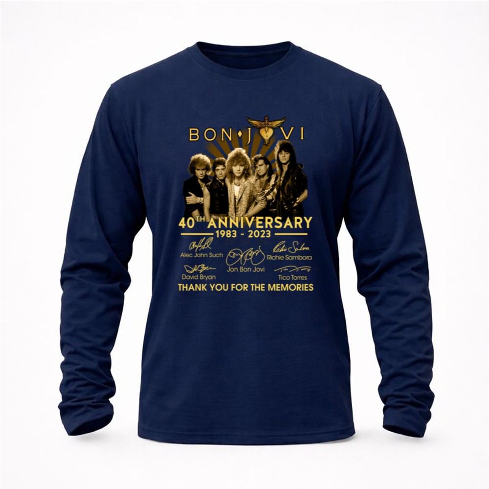 This design captures the essence of Bon Jovi’s remarkable journey from 1983 to 2023, honoring the band’s legendary lineup. With signatures from its iconic members, it evokes a sense of nostalgia and gratitude, inviting fans to celebrate the memories created through their music. This shirt serves as a wearable piece of rock history, connecting generations of music lovers.