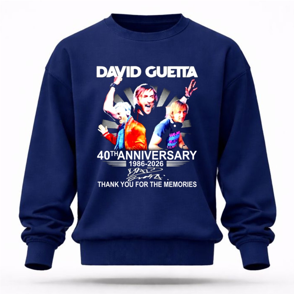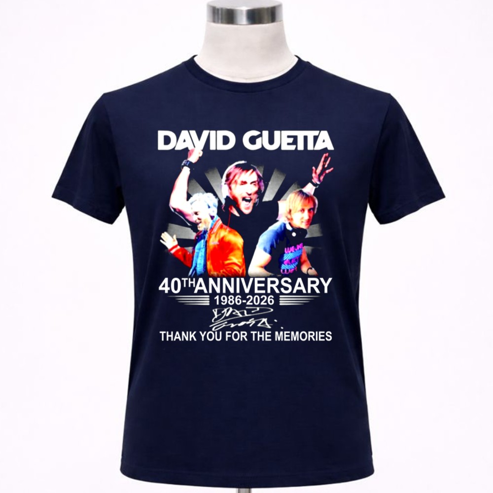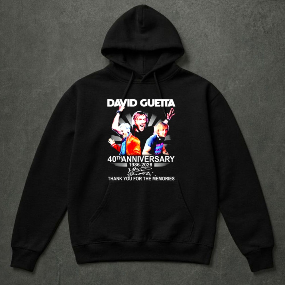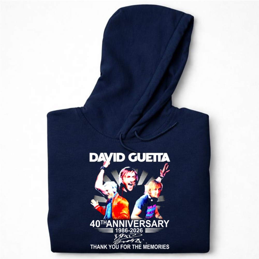 David Guetta 40th anniversary, music legend tribute, electronic music icon, DJ culture celebration, dance music history, thank you for the memories, music festival apparel, iconic music moments