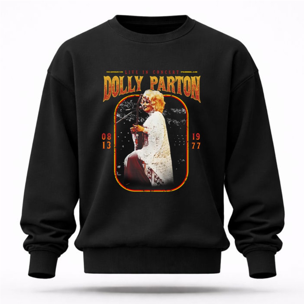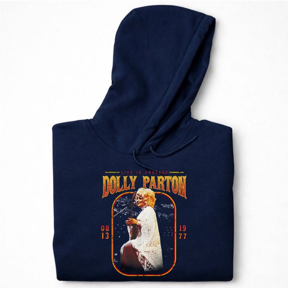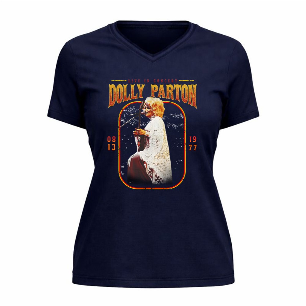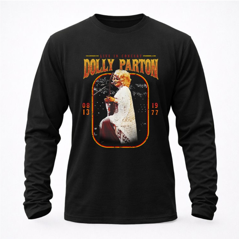 Dolly Parton concert tee, 1977 live performance, country music legend, vintage music apparel, Nashville icon, classic concert memorabilia, music festival wear, timeless artist tribute