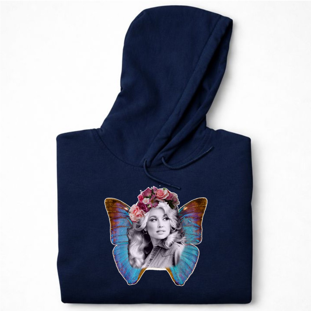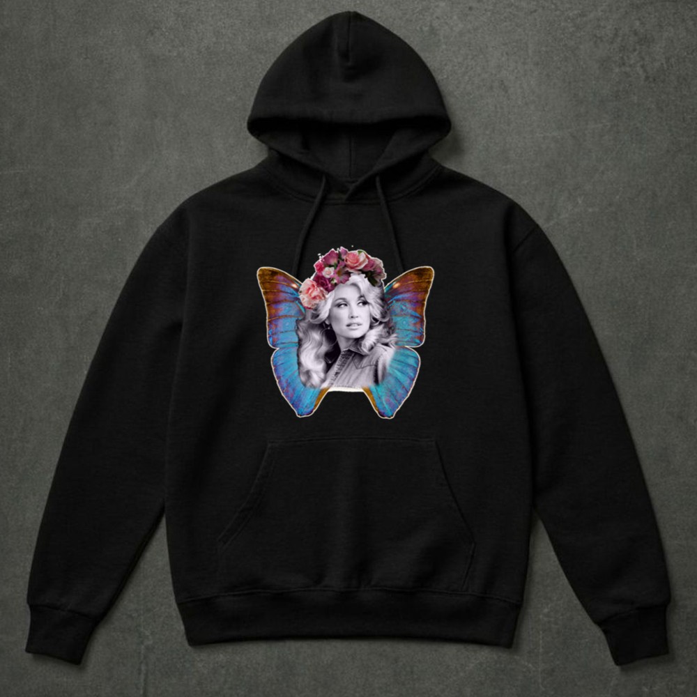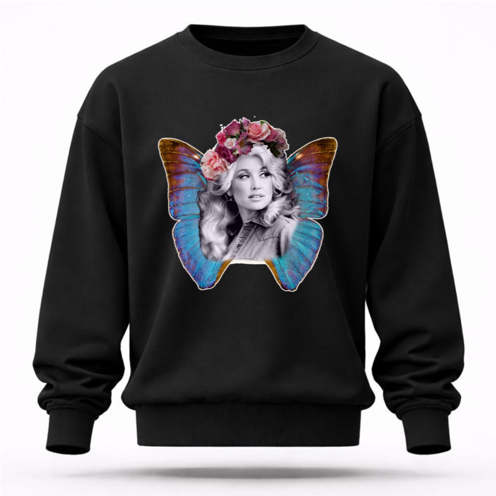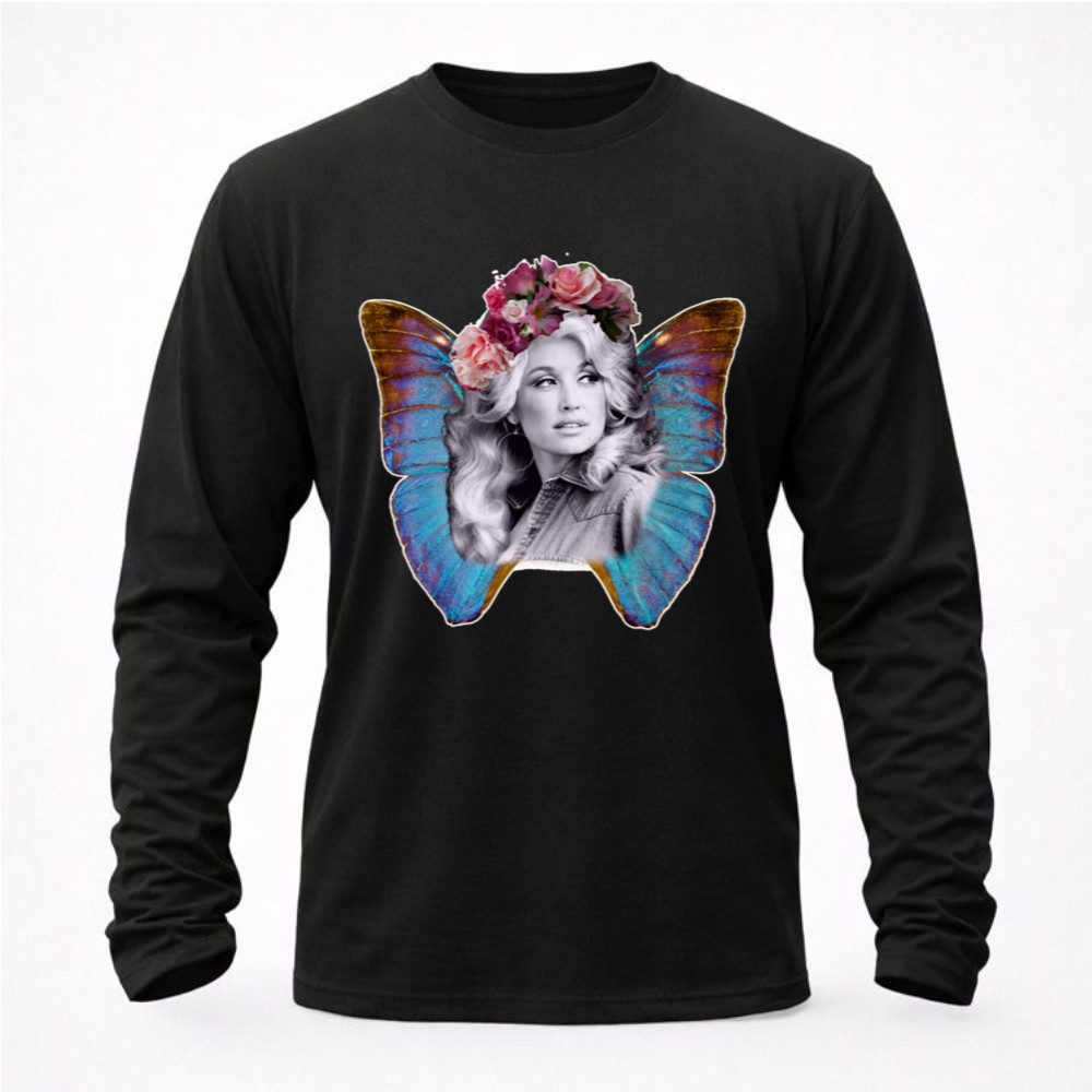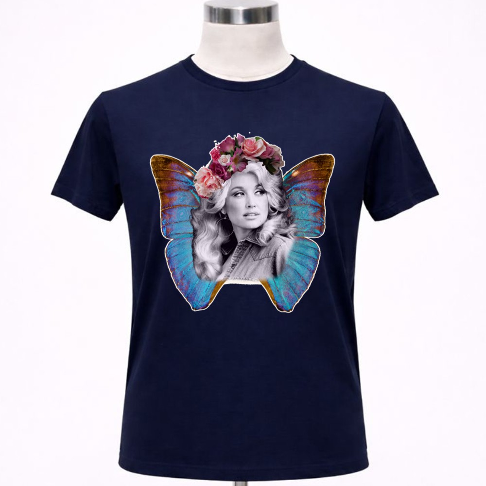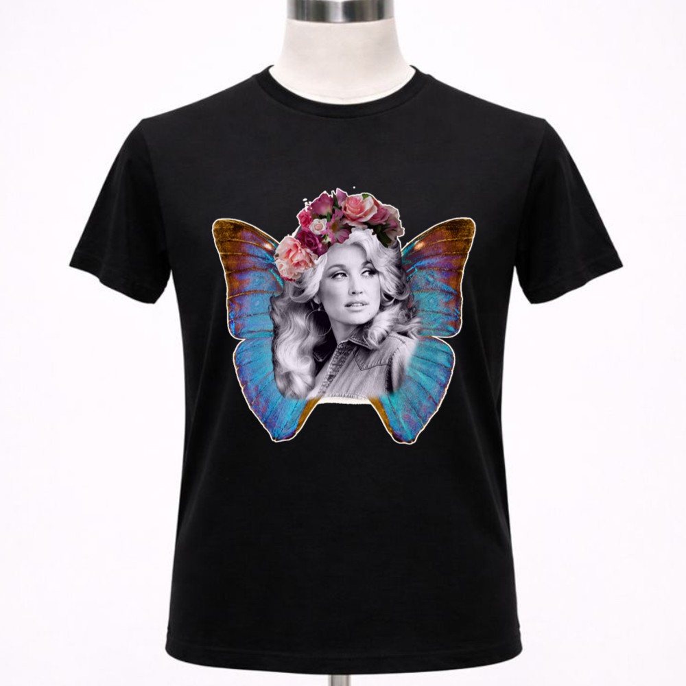 Dolly Parton fan apparel, country music t-shirt, butterfly art shirt, vintage floral design, Love Is Like A Butterfly, music legend tribute, colorful art tee, gift for music lovers