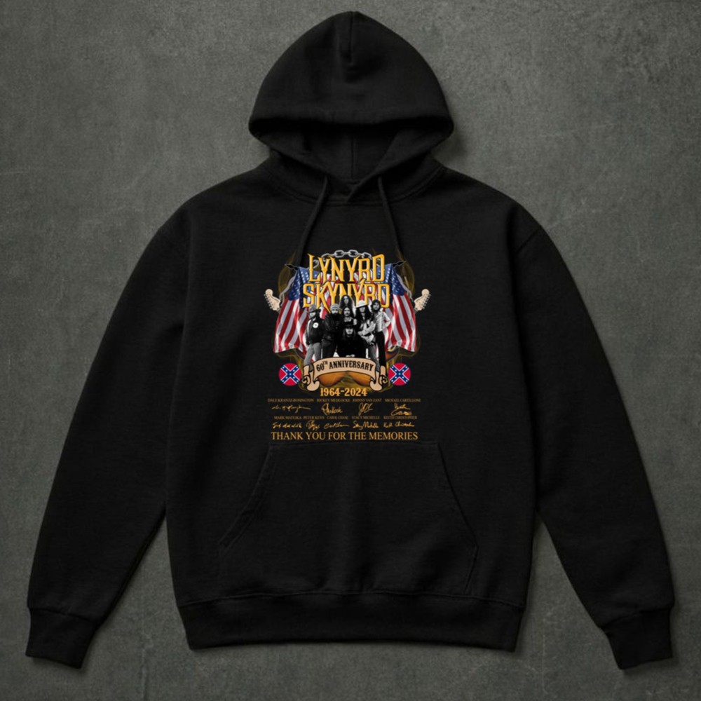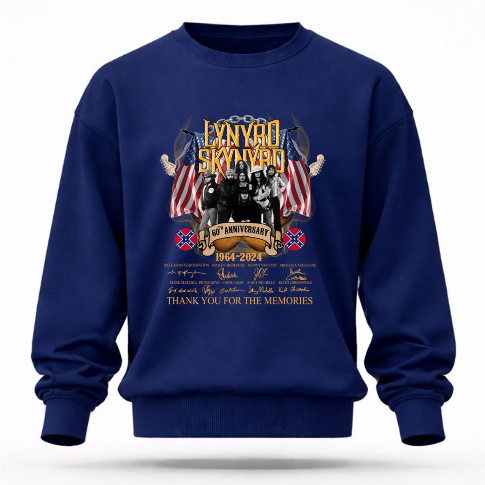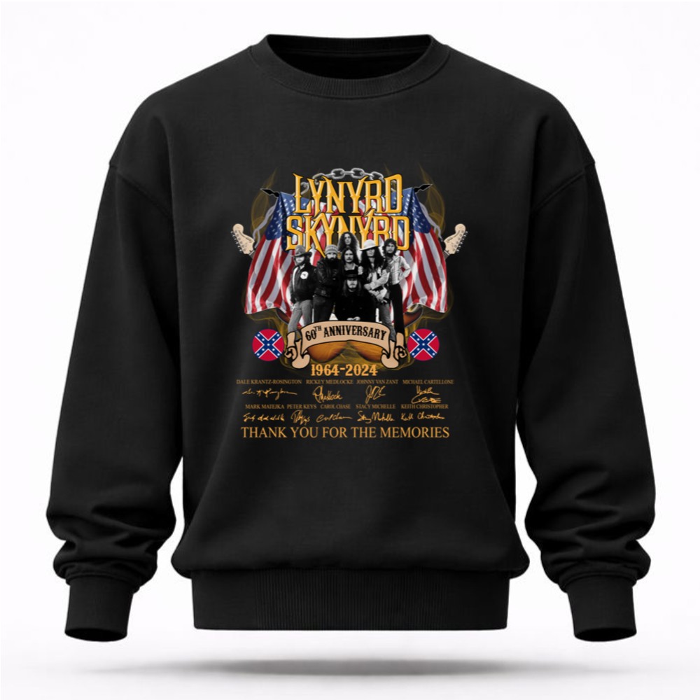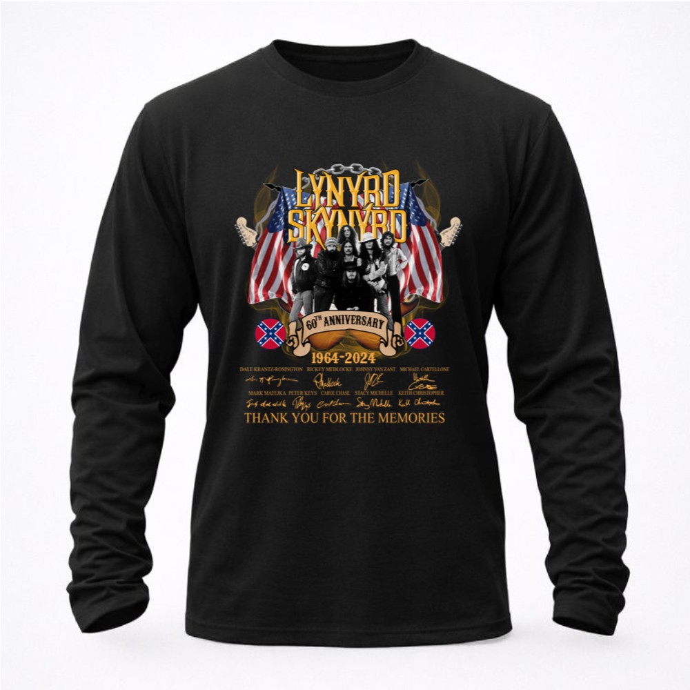 This design captures the essence of Lynyrd Skynyrd’s legacy, featuring the heartfelt message ‘Thank You For The Memories’ alongside the signatures of beloved band members. The vintage tribute style reflects the deep connection fans have with the music that shaped a generation, celebrating both nostalgia and pride in the Southern rock tradition.