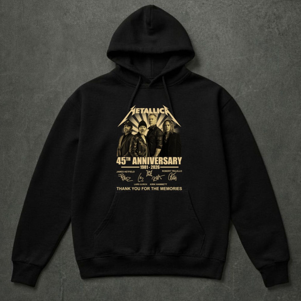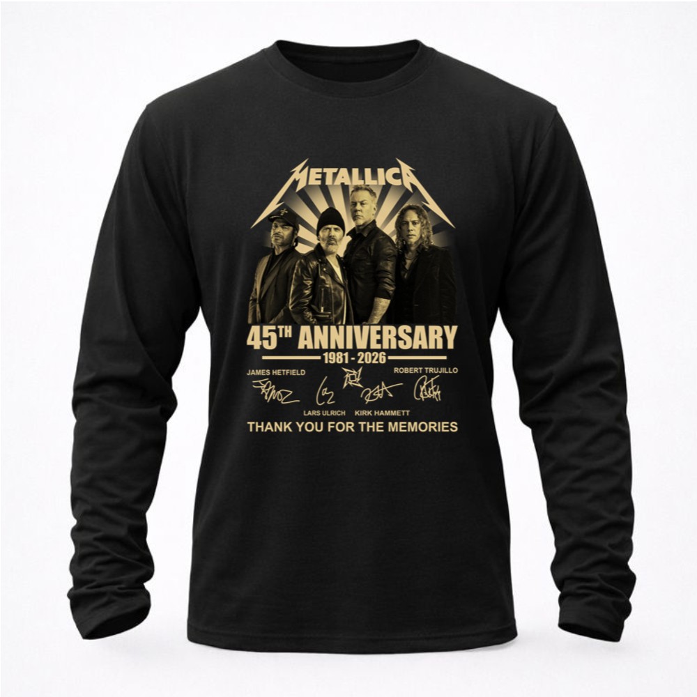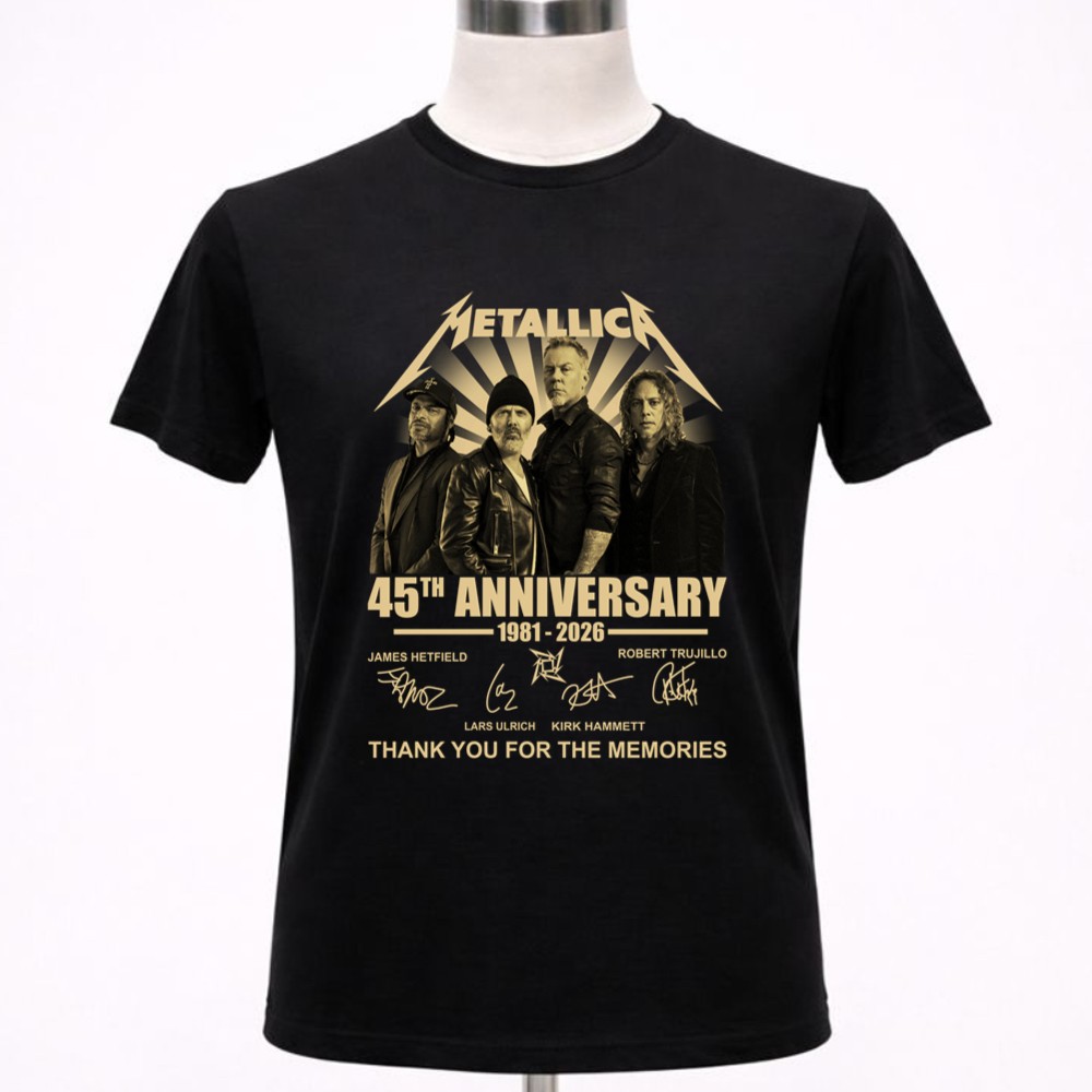 Metallica anniversary shirt, legendary rock band, heavy metal icons, thank you for the memories, concert memorabilia, 1981-2026 tribute, music fan gift, premium quality t-shirt