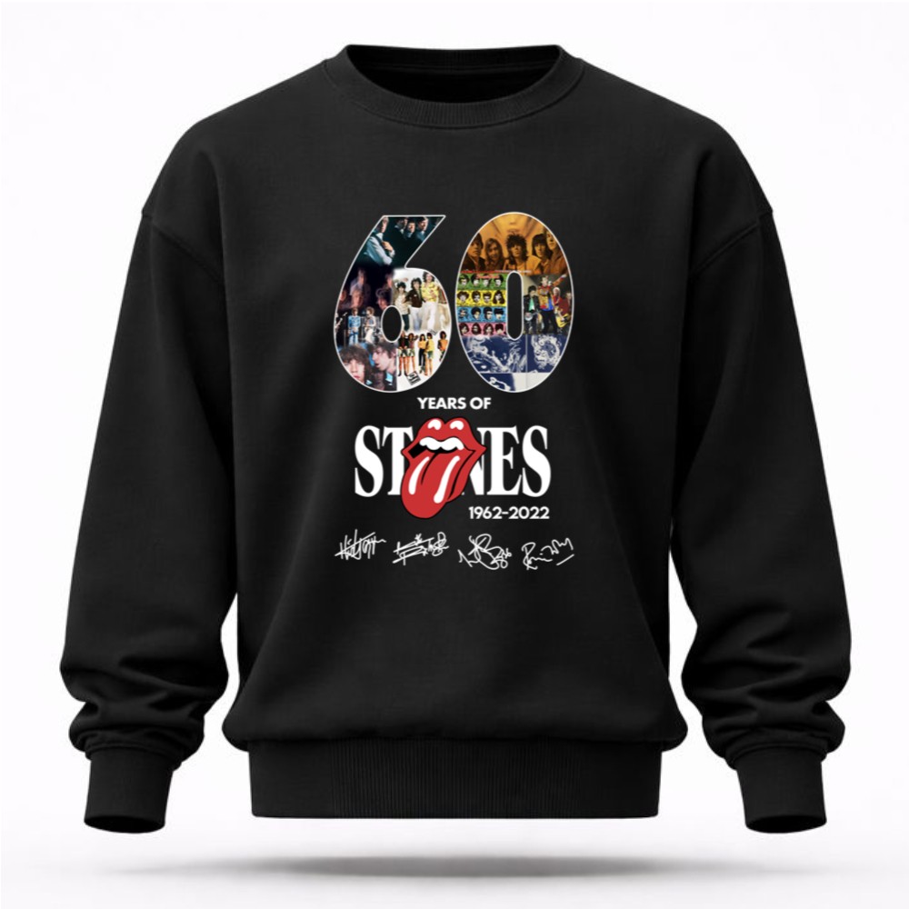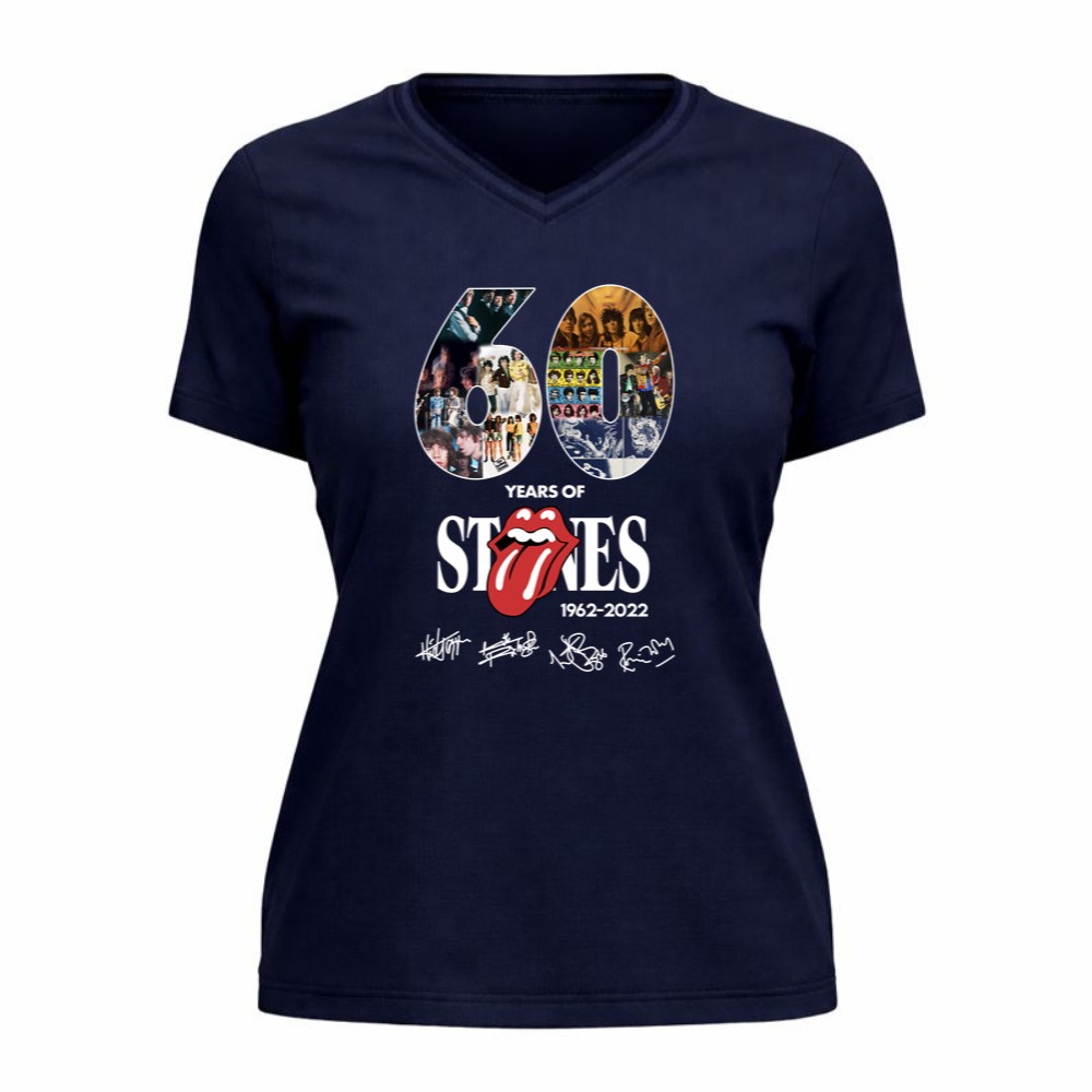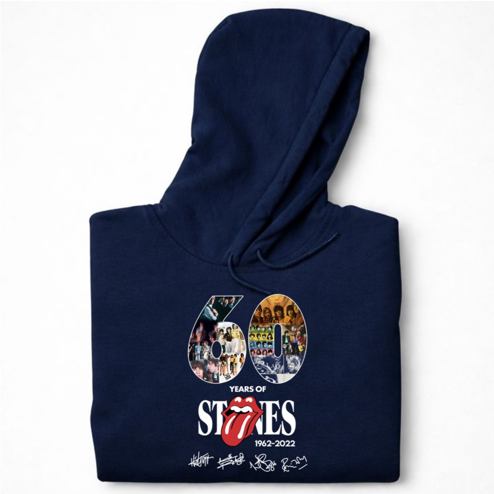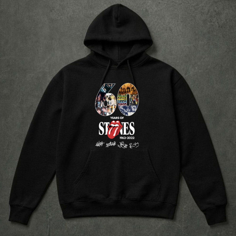 Rolling Stones 60th anniversary, Rock and Roll icons, legendary music moments, iconic band signatures, celebration of music history, gift for music lovers, premium cotton t-shirt, vintage rock memorabilia