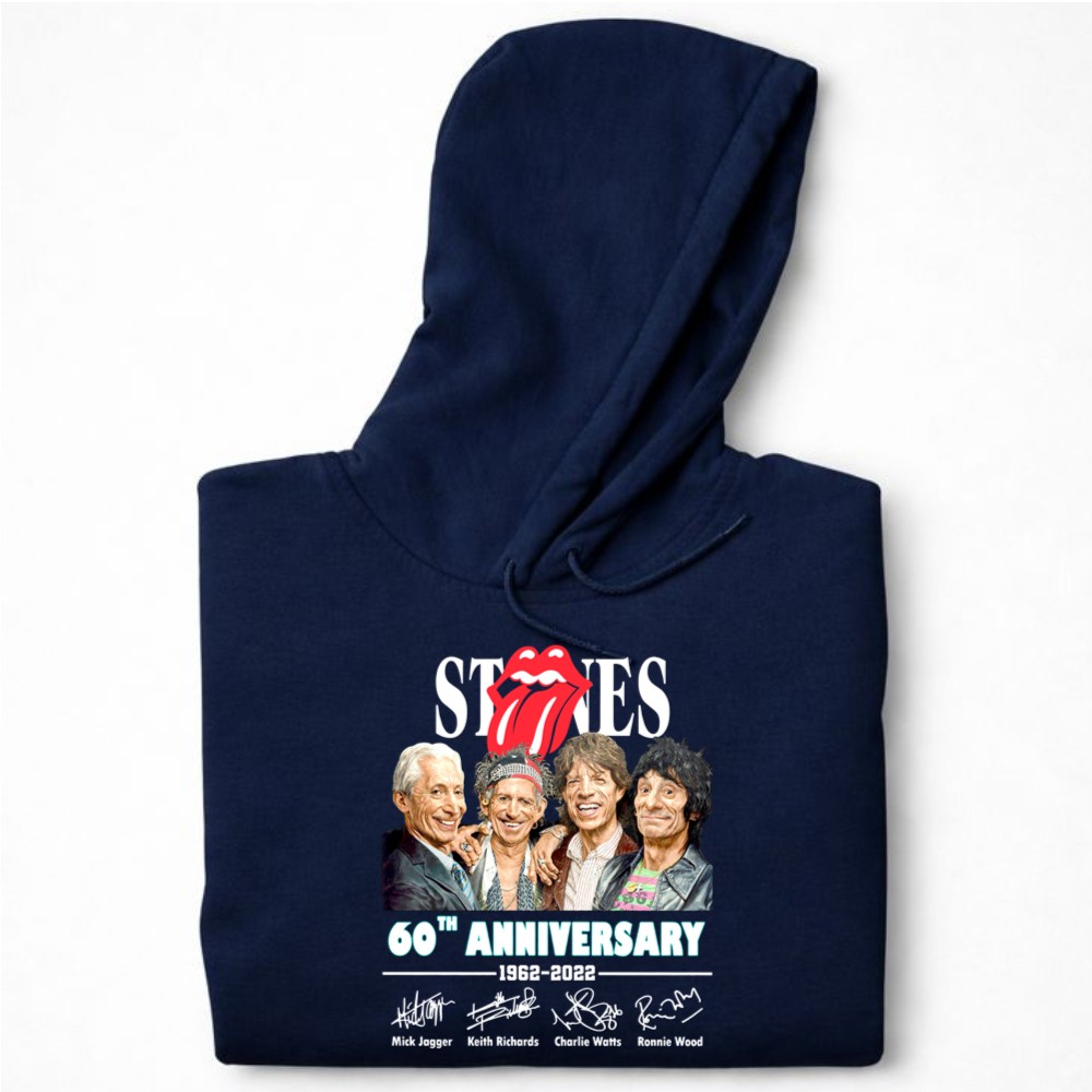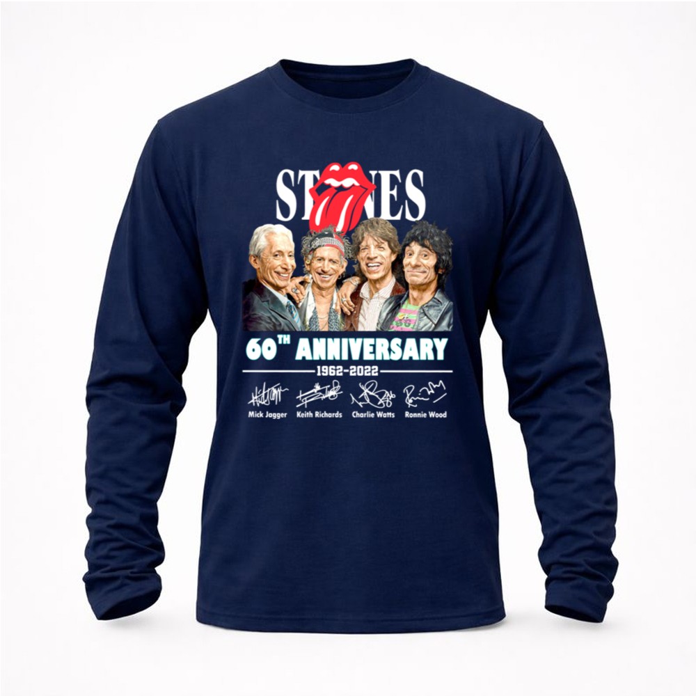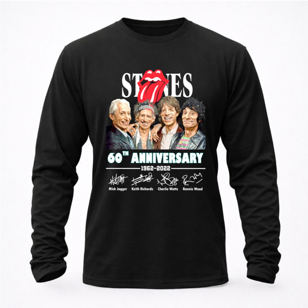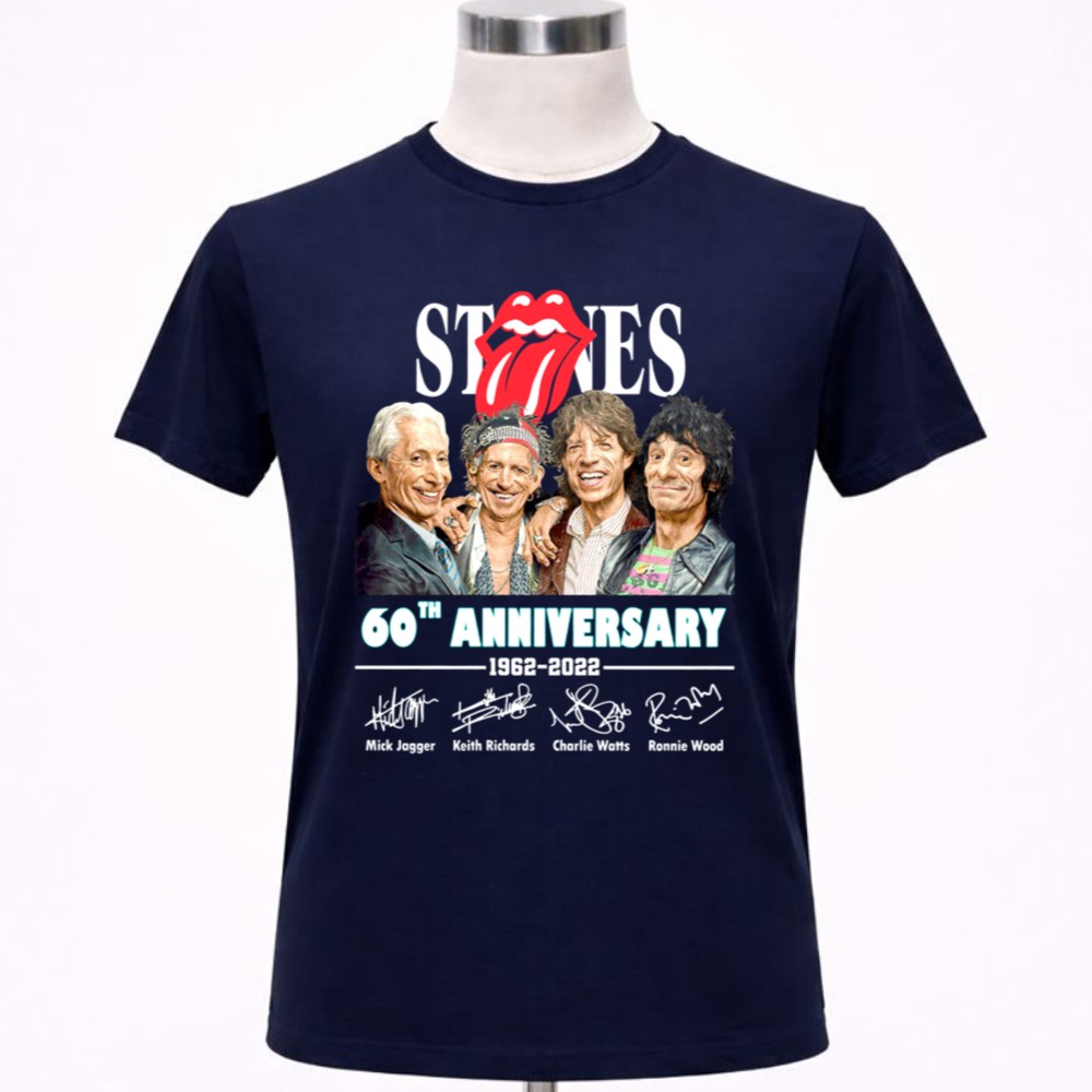 Rolling Stones anniversary shirt, rock band legends tee, 60th anniversary celebration, iconic music apparel, tribute to classic rock, Mick Jagger memorabilia, band merchandise, music lover gift