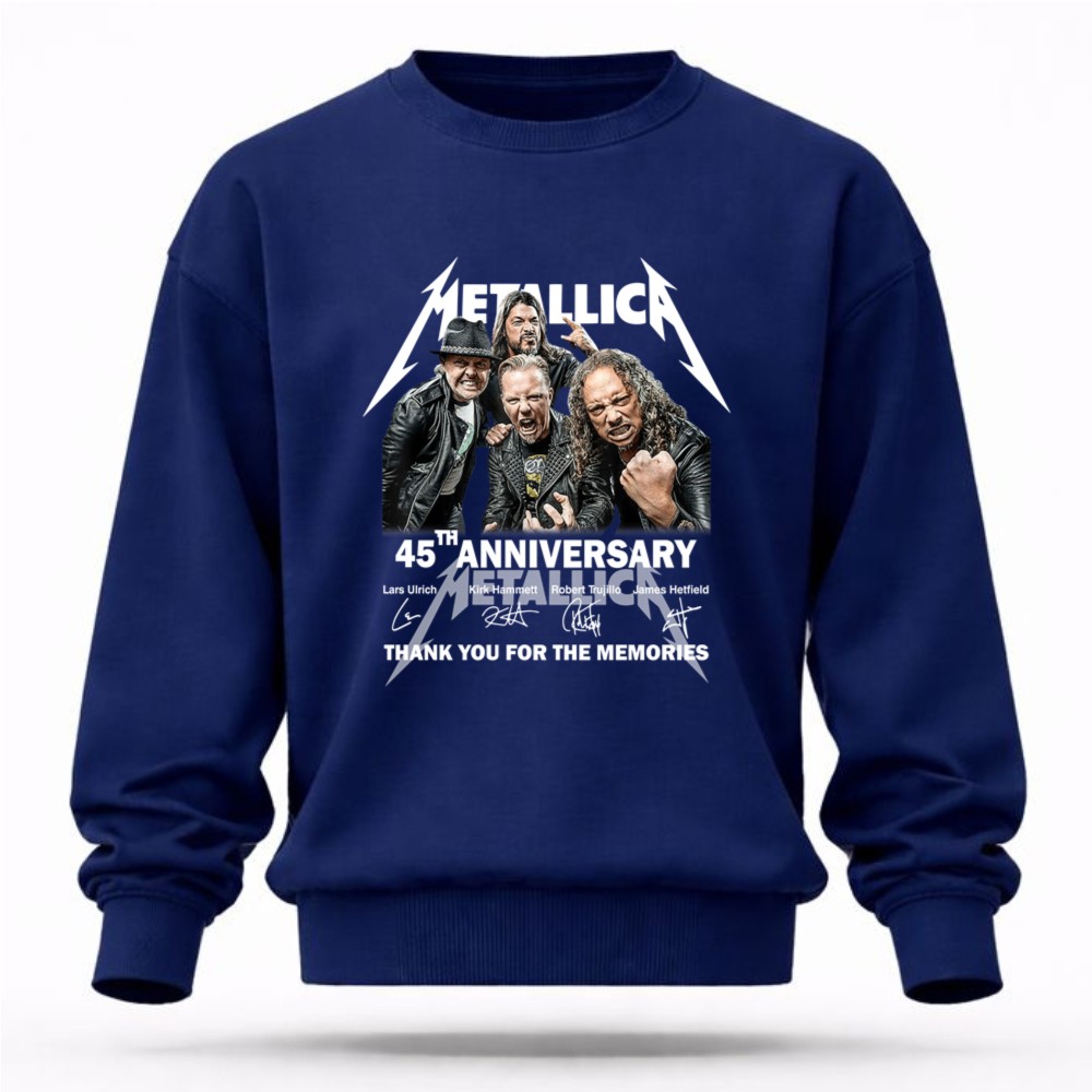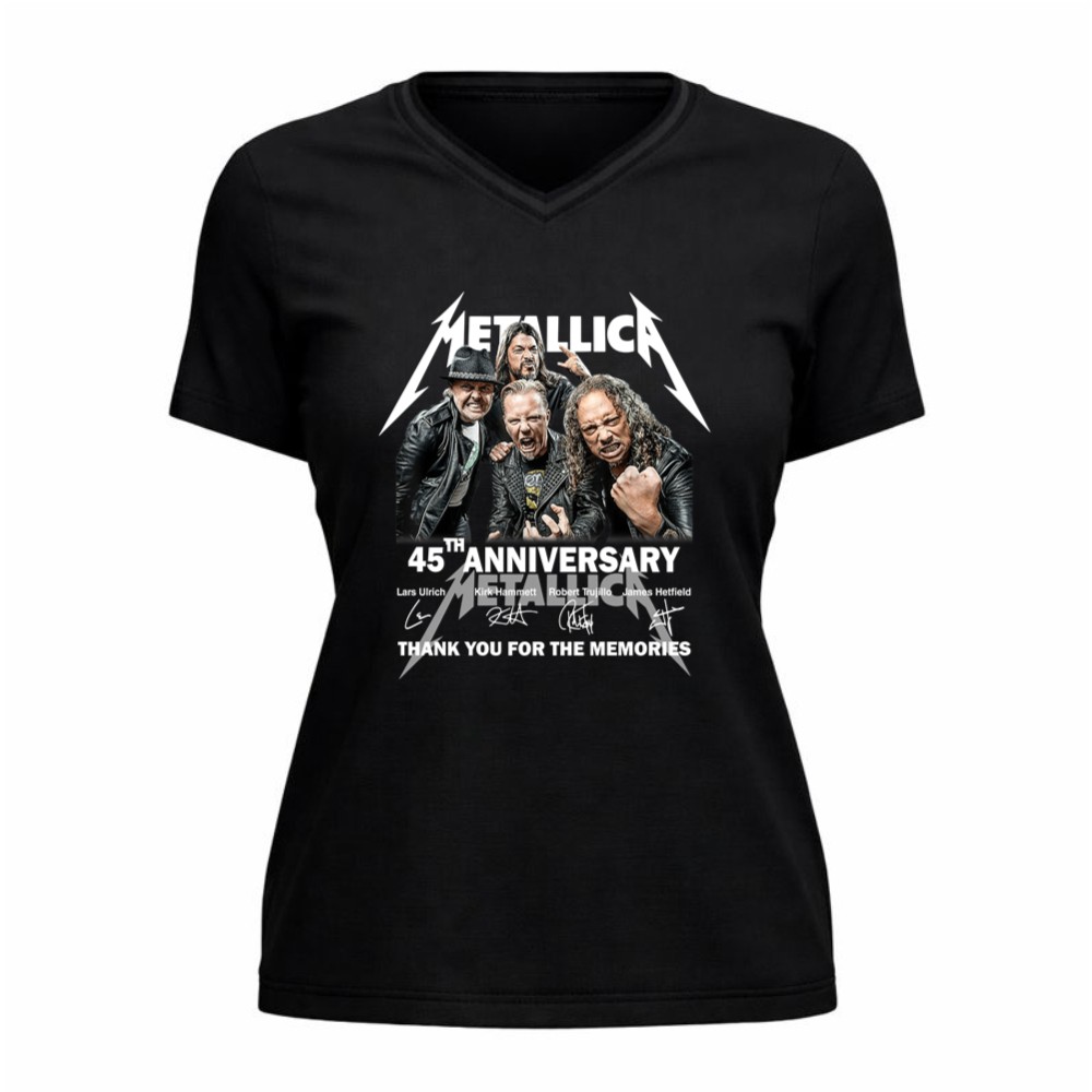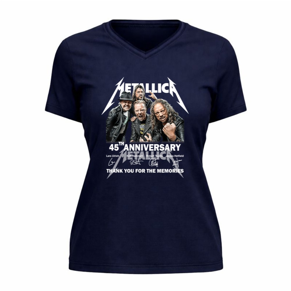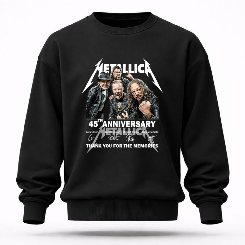Metallica 45th anniversary, rock music icons, heavy metal legends, band memorabilia, iconic rock t-shirt, tribute to Metallica, thank you for the memories, premium cotton tee