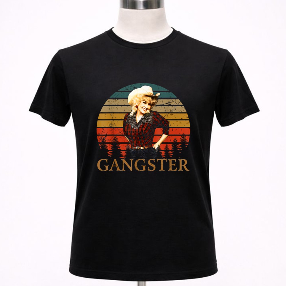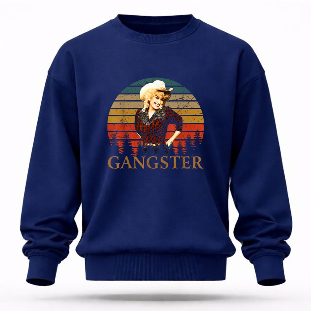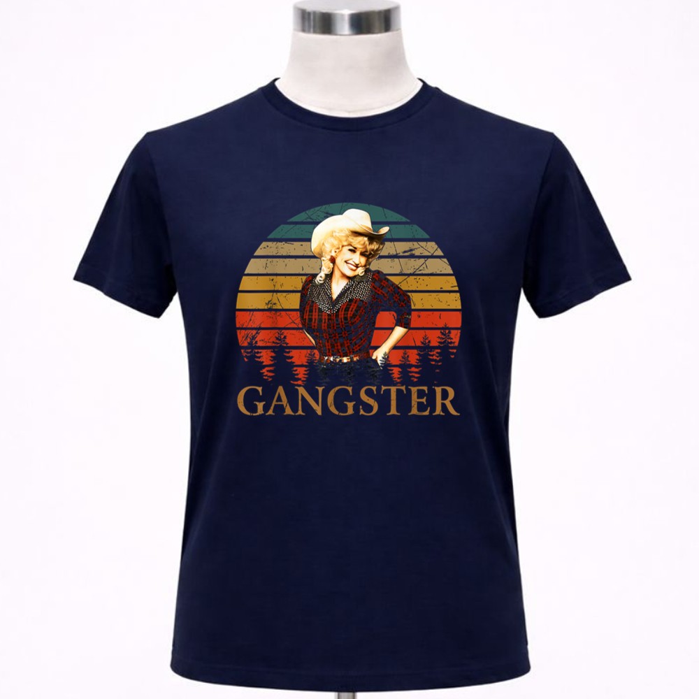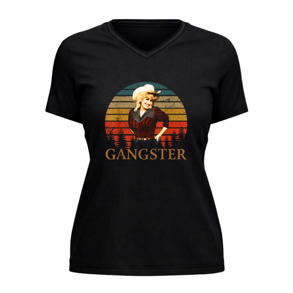 This design pays homage to Dolly Parton, a true country music legend, by blending retro vintage aesthetics with a playful attitude. The bold ‘GANGSTER’ typography beneath her image reflects the empowerment and confidence she embodies, making it a celebration of Nashville pride and pop culture. The warm sunset background adds a touch of southern charm, inviting admirers to connect with the spirit of fun and authenticity.